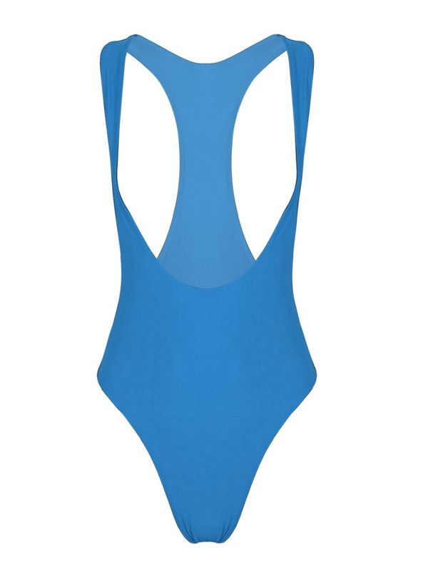 Blue Women One Piece Sleeveless Leotard Bodysuit Open Chest High Cut Thong Swimsuit