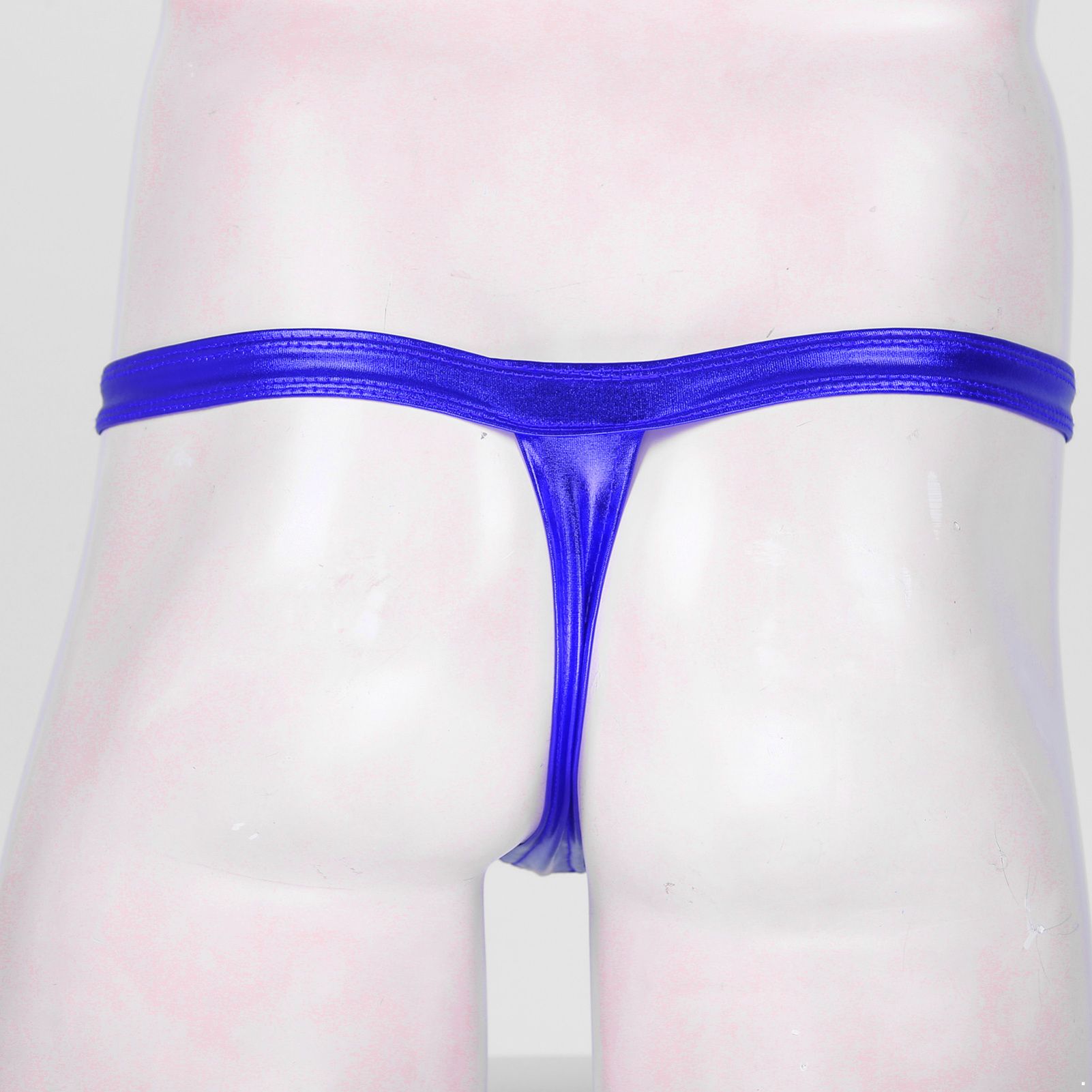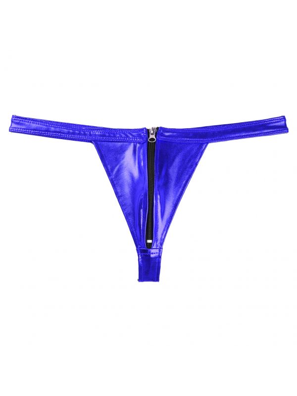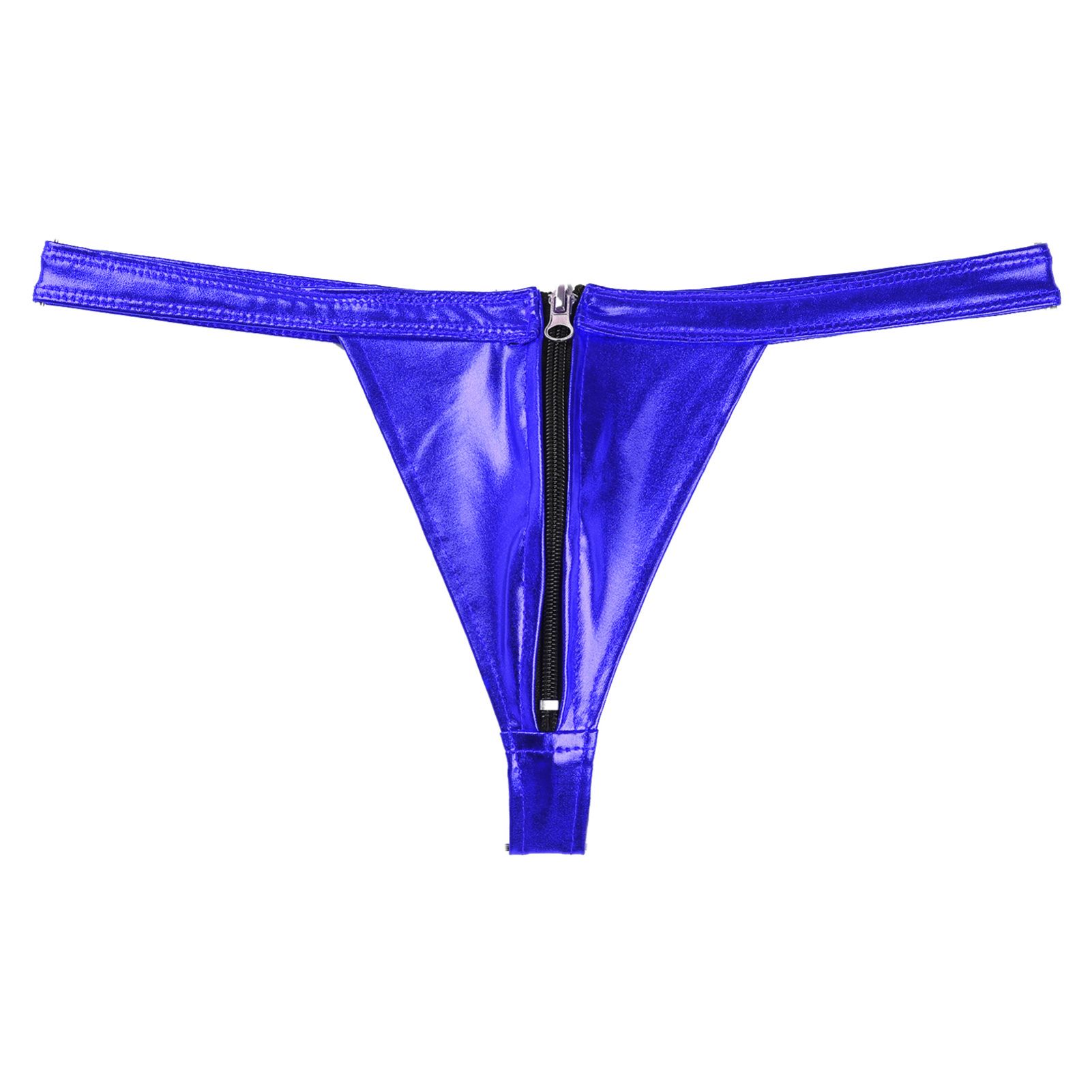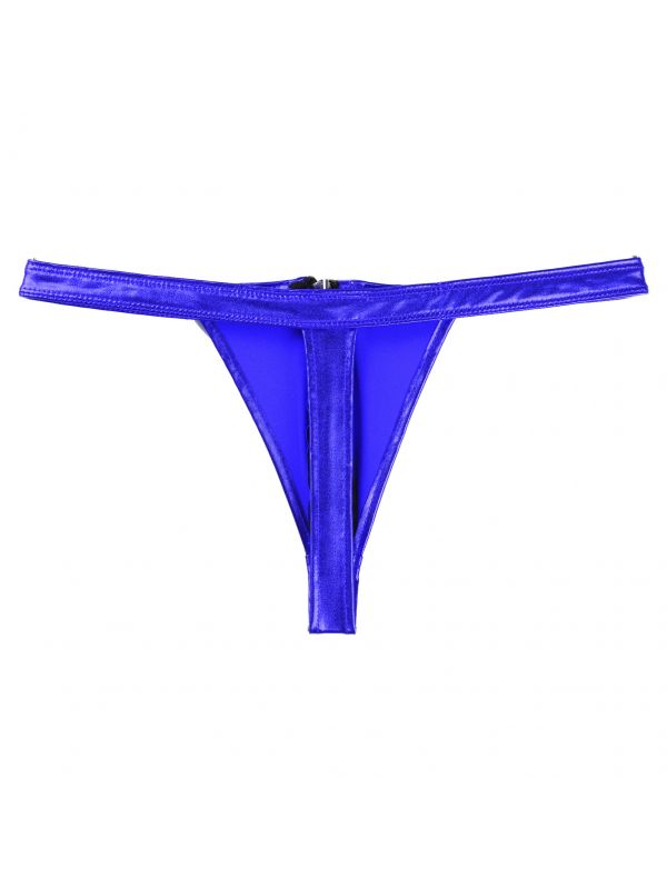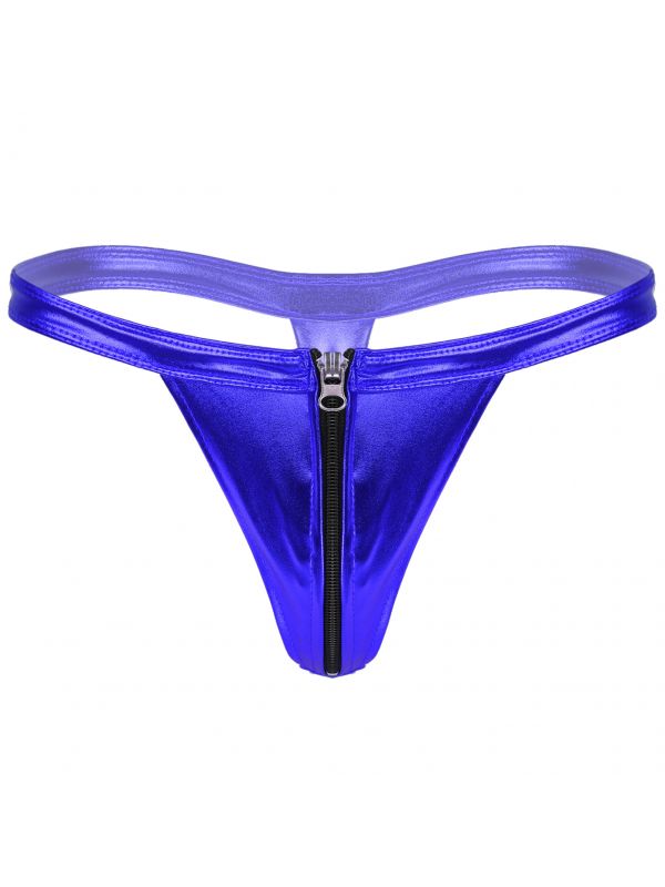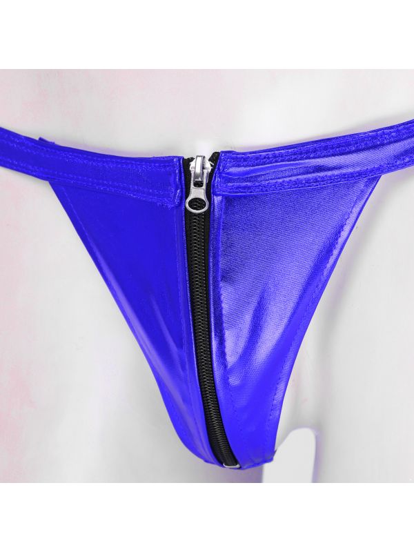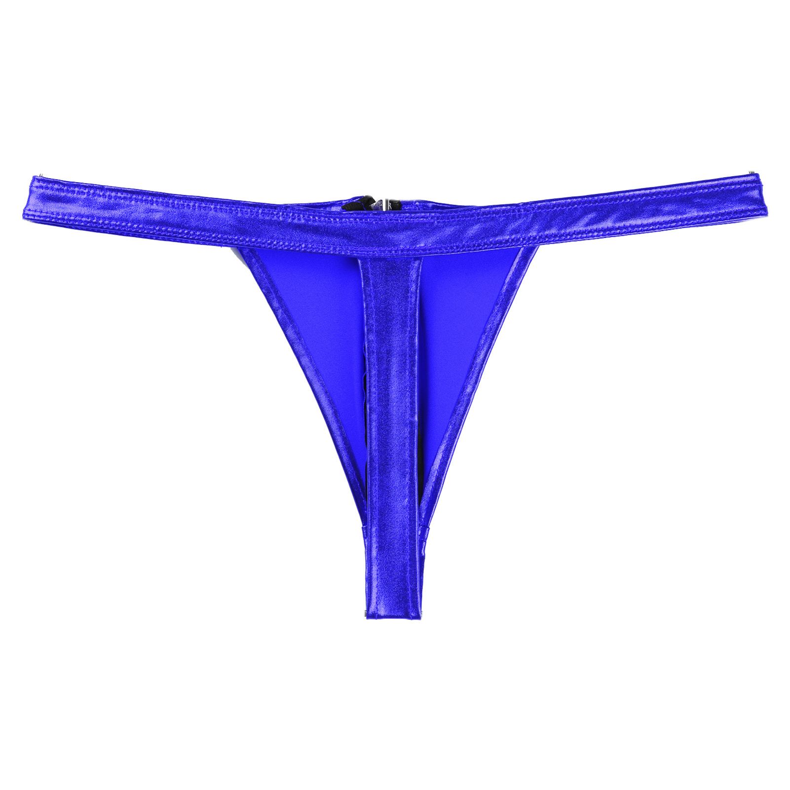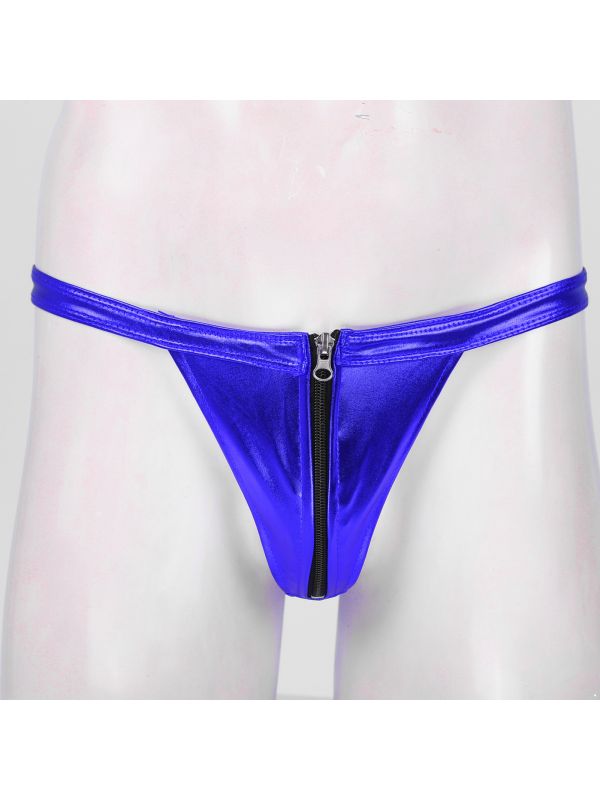 iEFiEL Men Glossy Bulge Pouch G-string Thongs Low Waist Zipper Front Bikini Briefs Bottoms