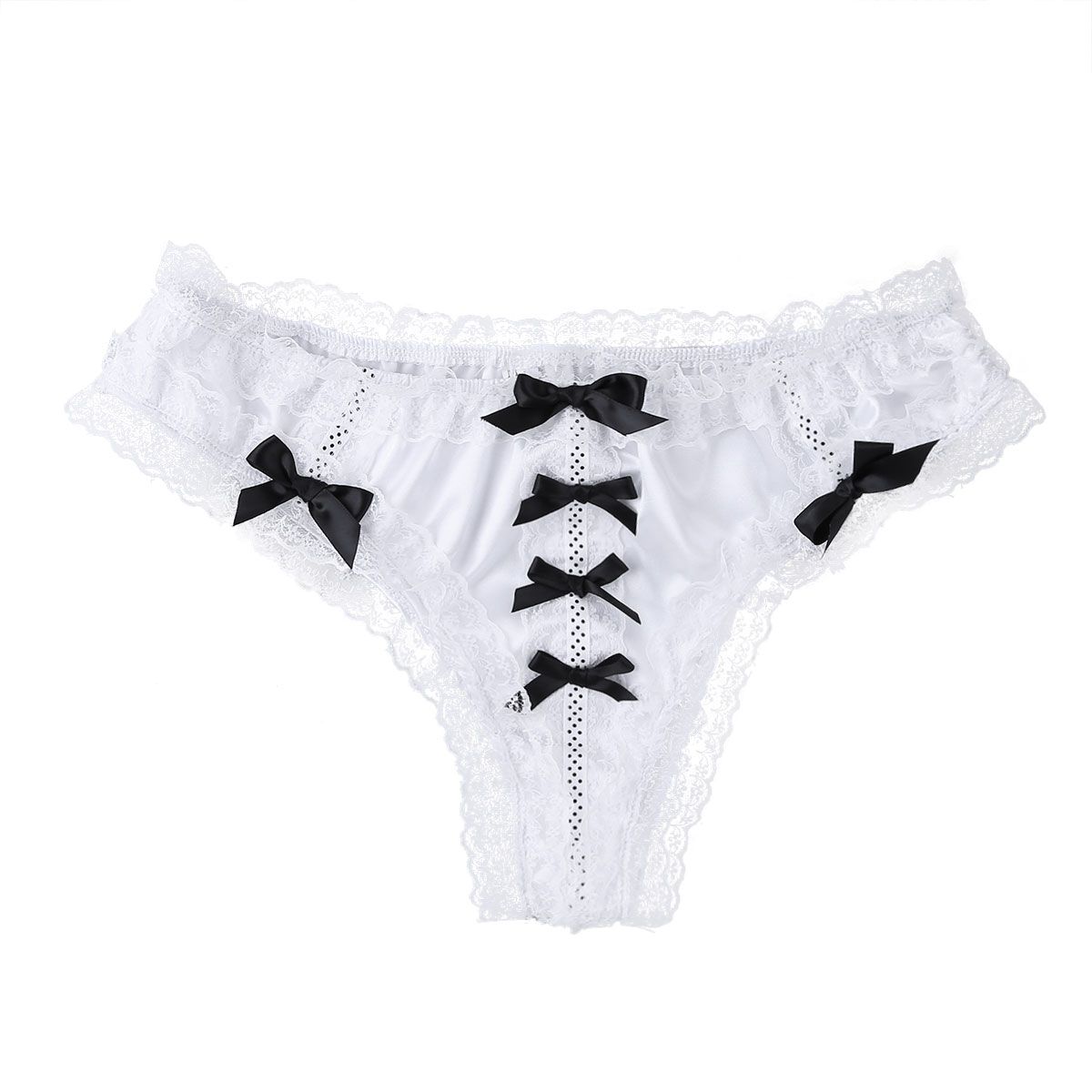 White Men's Sissy Panties Ruffled Satin French Maid Panties Briefs Underwear