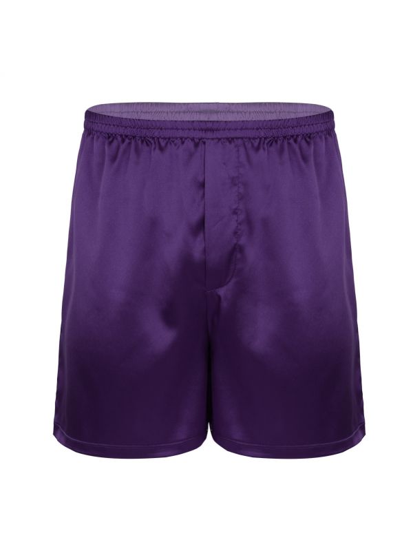Men Satin Solid Color Loose Lounge Shorts Trunks