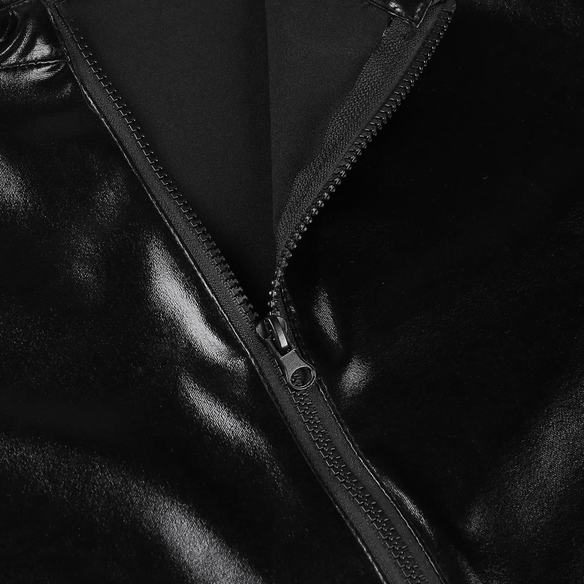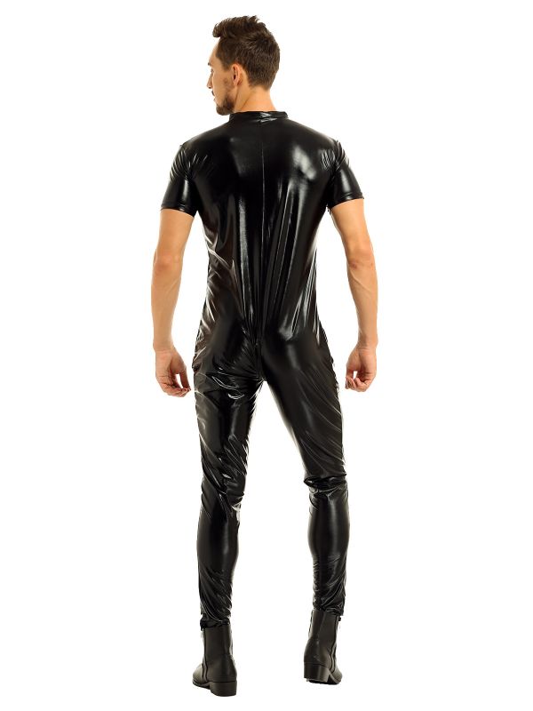 Men's Stretchy Faux Leather Zipper Crotch Leotard Bodysuit Clubwear
