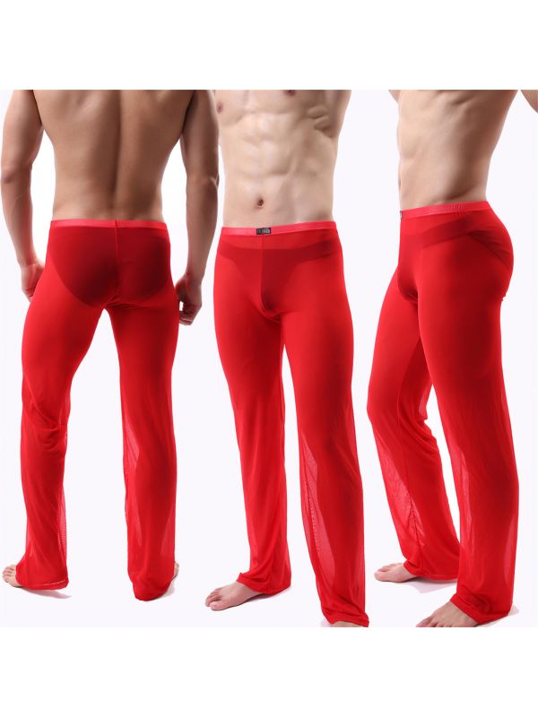 Mens See-though Mesh Ultra-thin Solid Color Lingerie Leggings