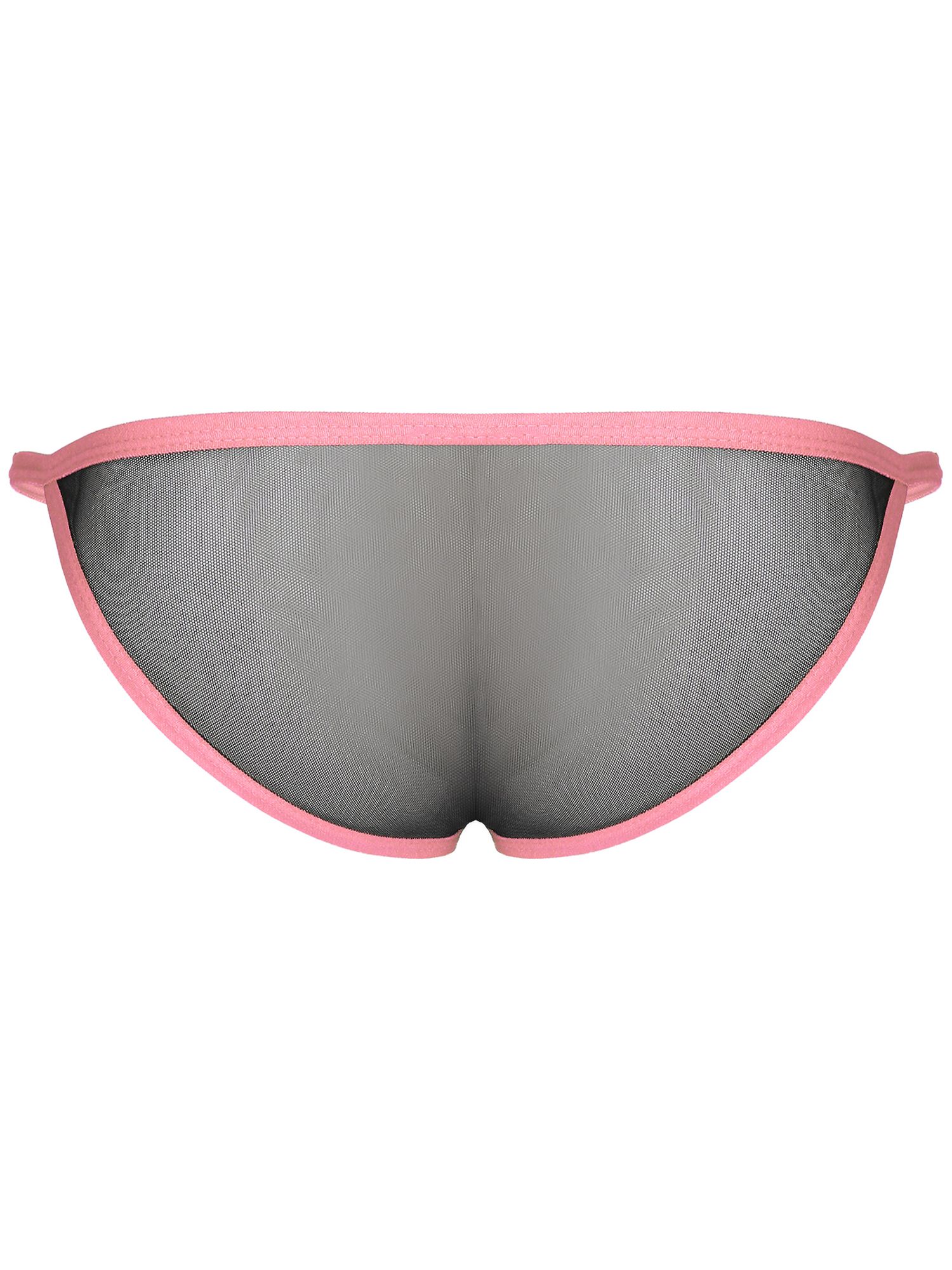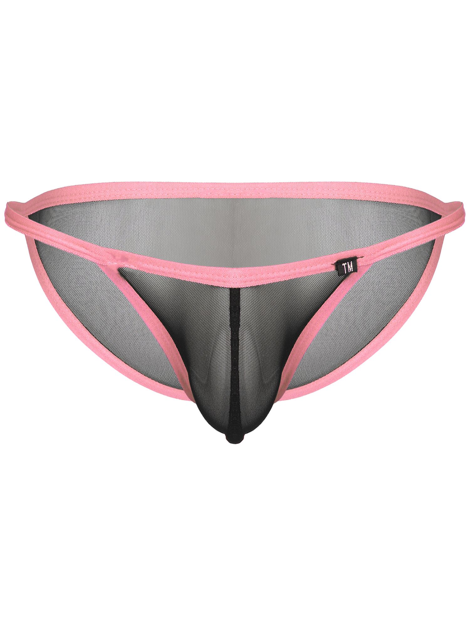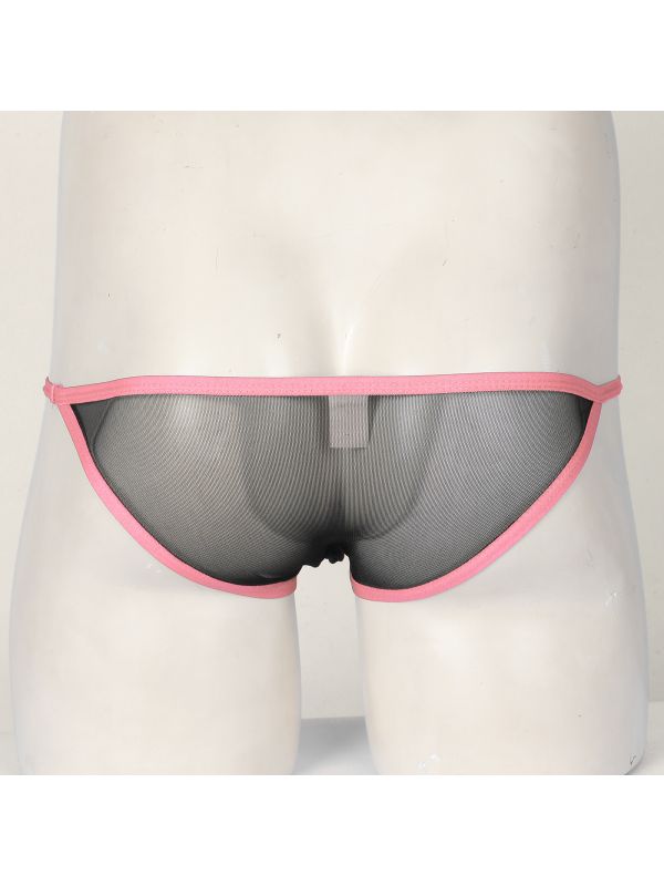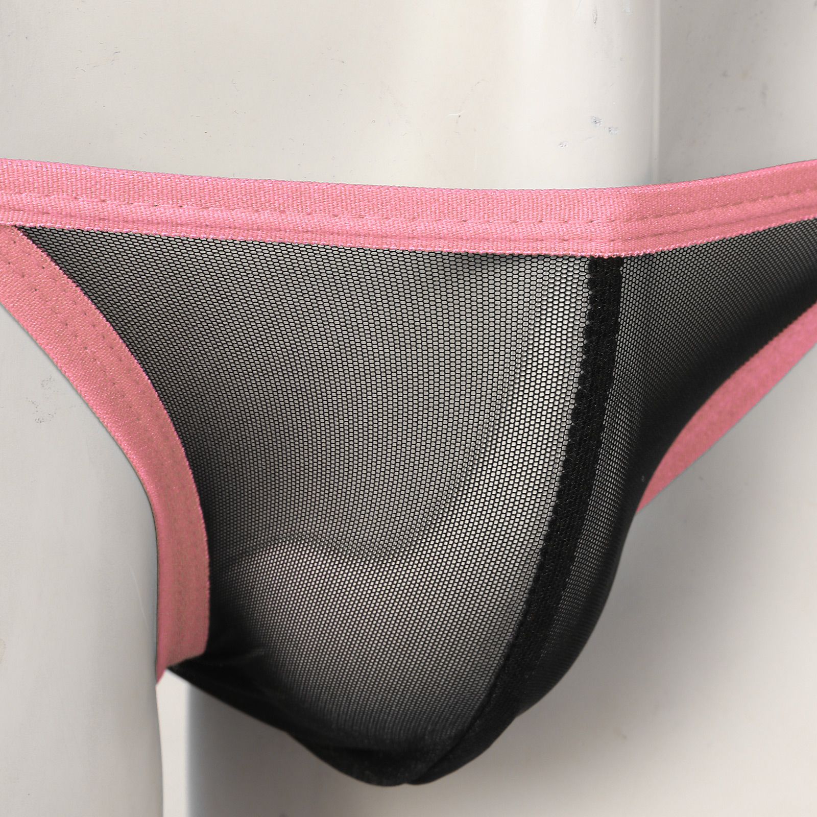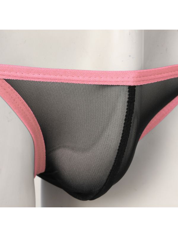 iEFiEL Mens See-Through Mesh Bulge Pouch Briefs Contrast Color Elastic Waistband Thong Underwear