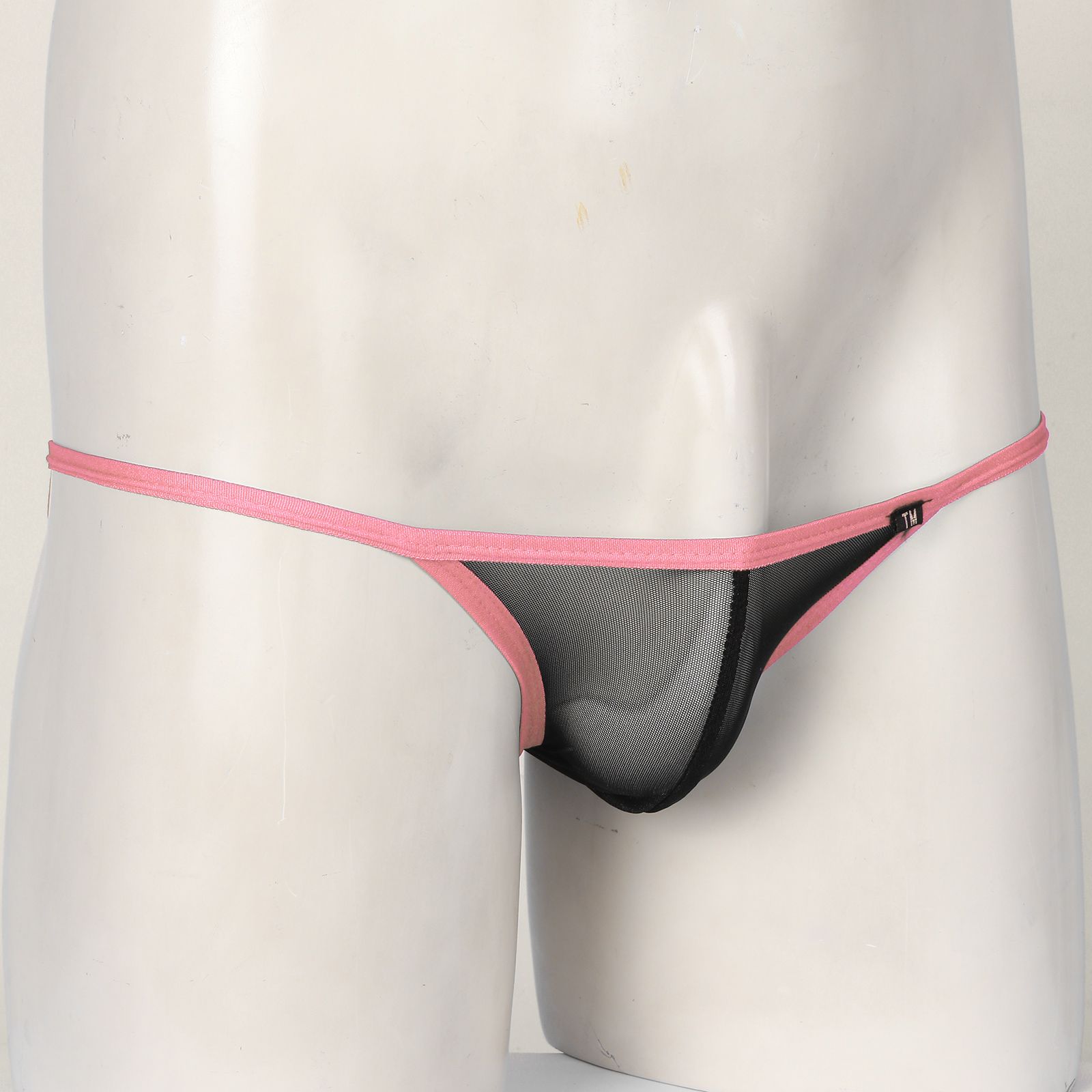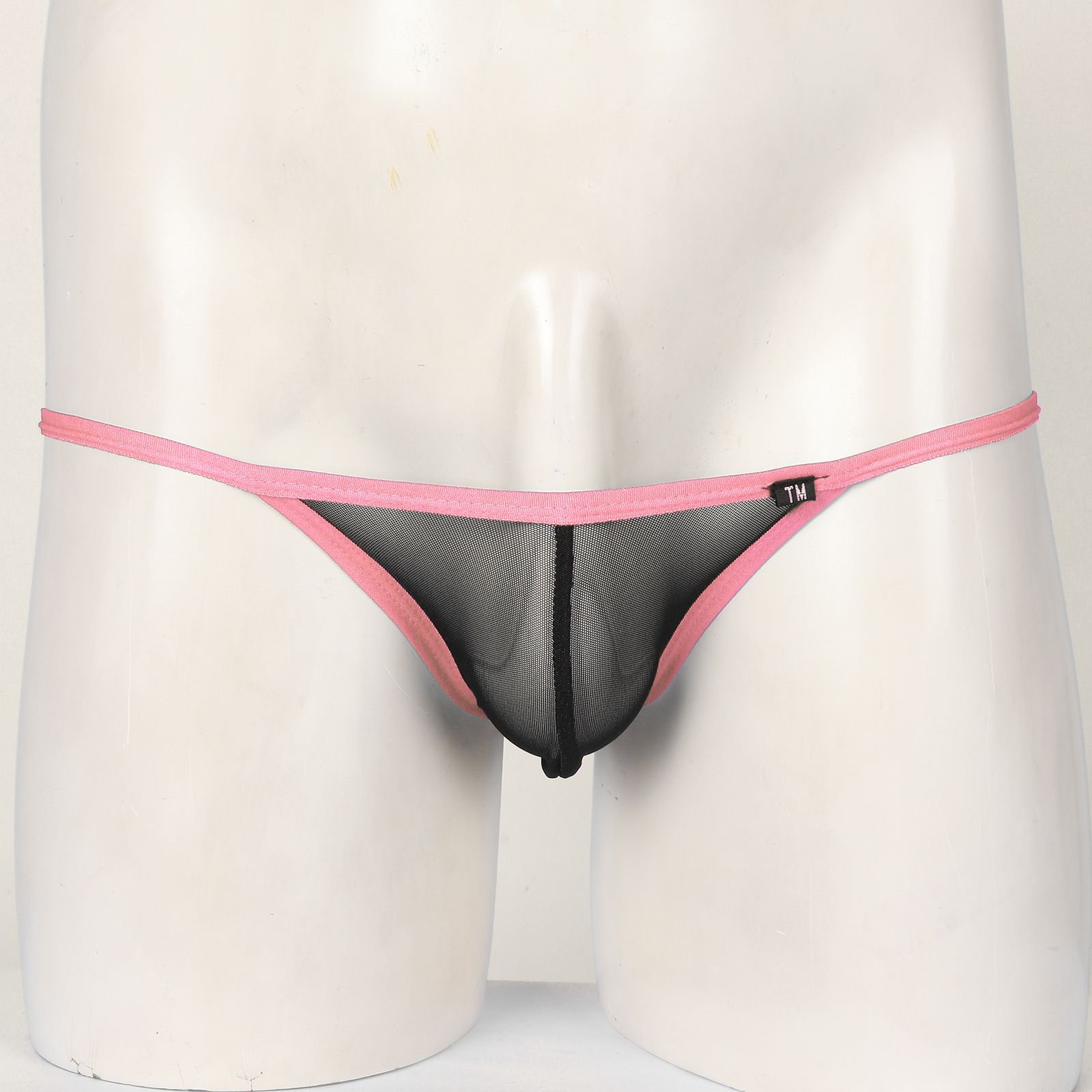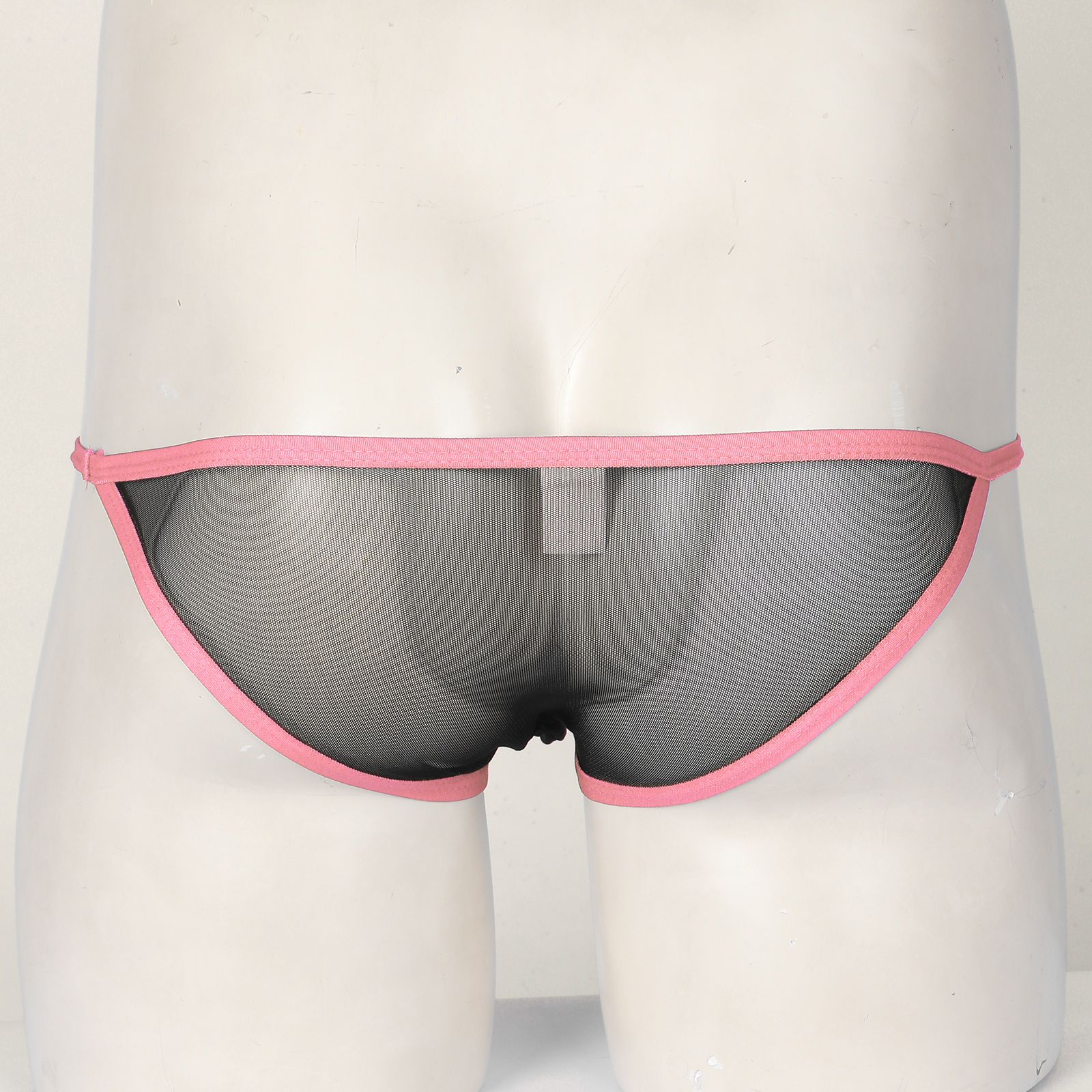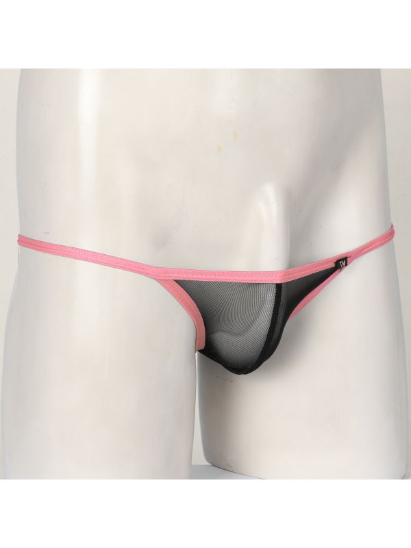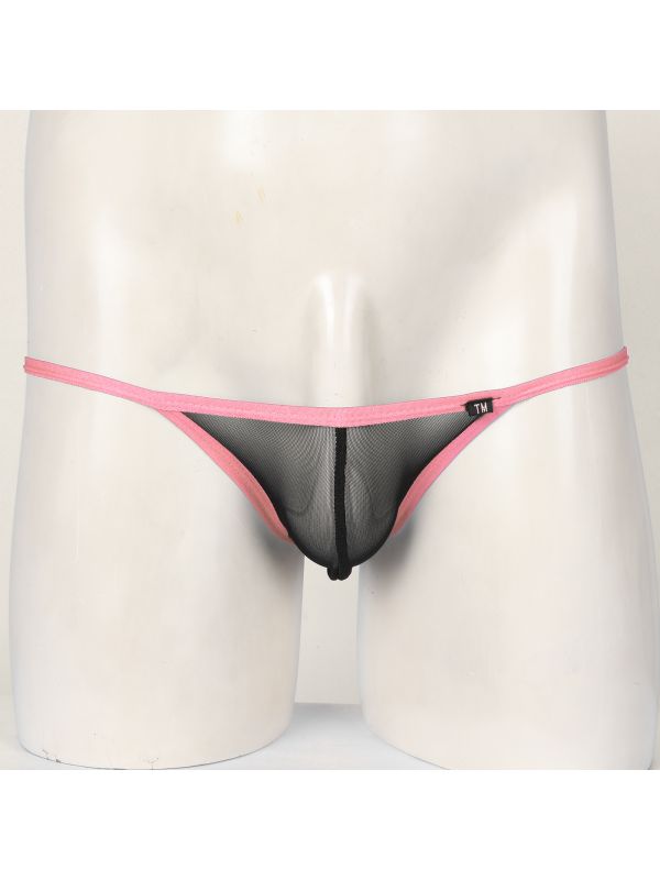 iEFiEL Mens See-Through Mesh Bulge Pouch Briefs Contrast Color Elastic Waistband Thong Underwear