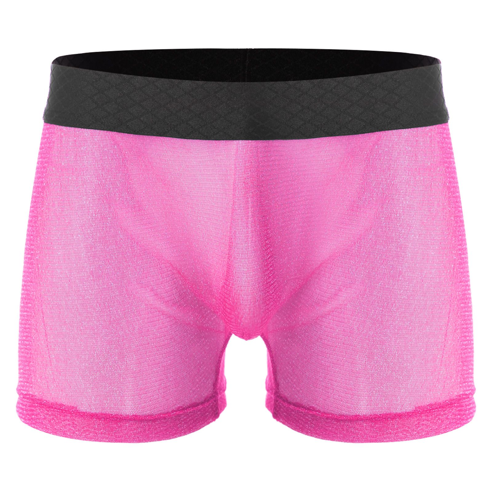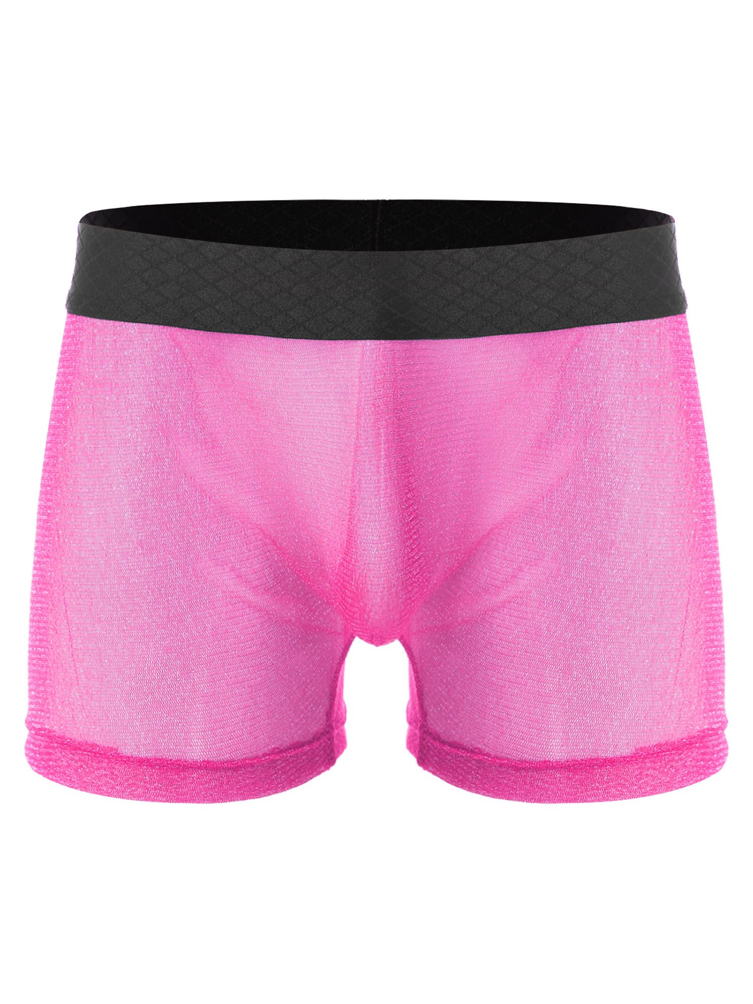 iEFiEL Mens Shiny Stretchy Boxer Brief See-through Shorts Low Rise Elastic Waistband Underpants Underwear