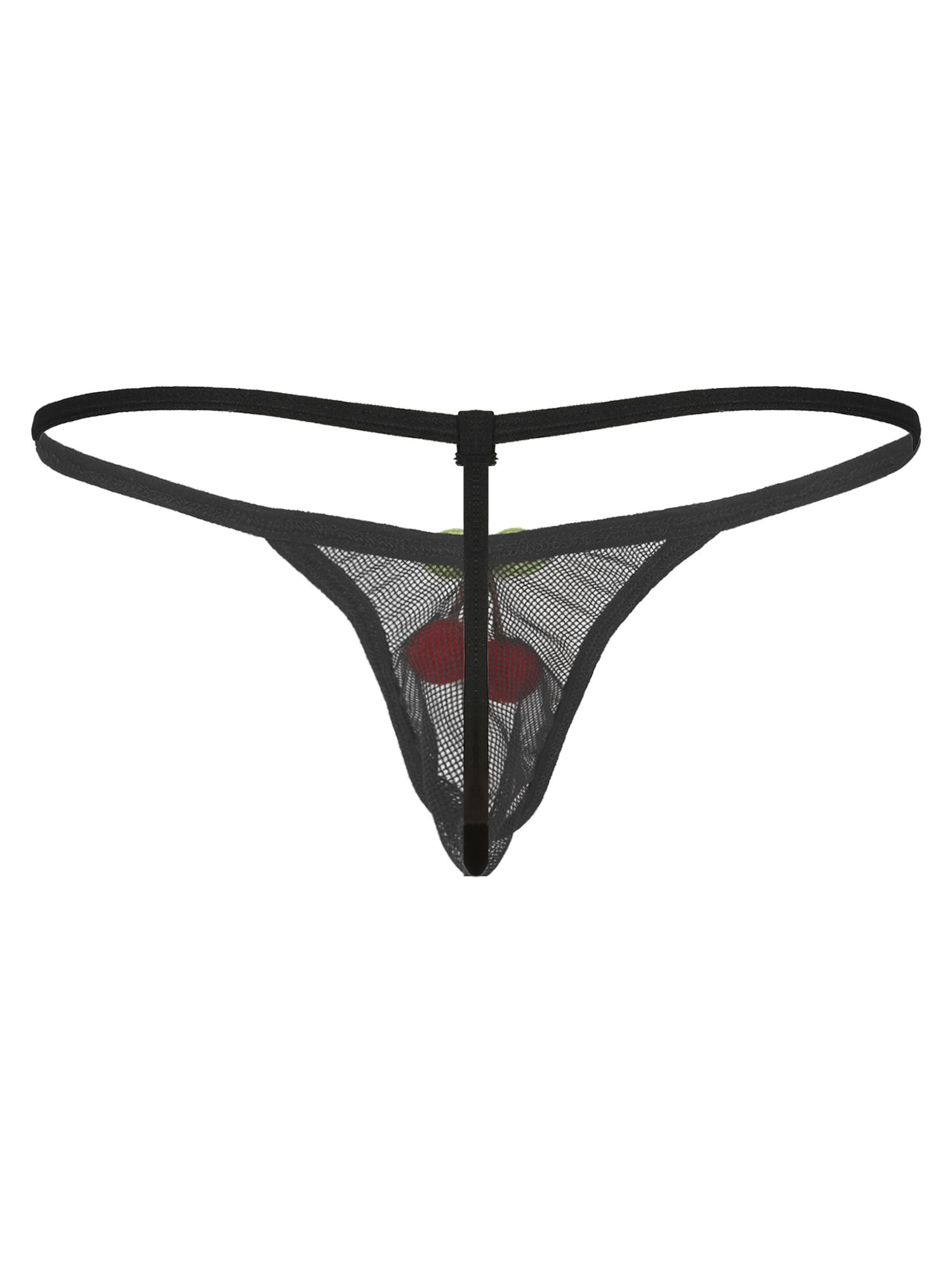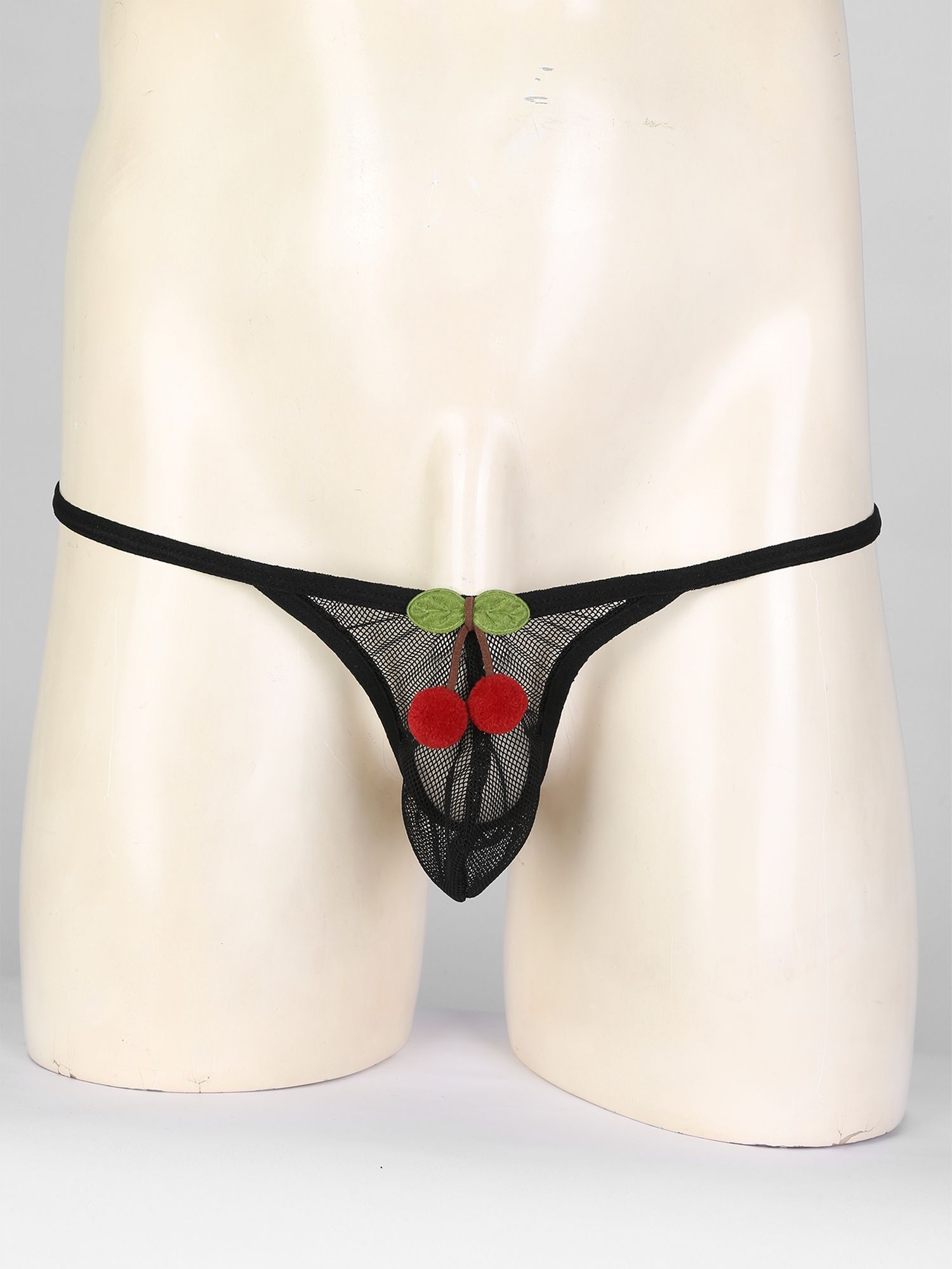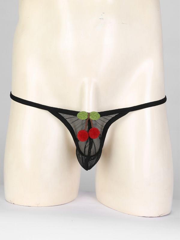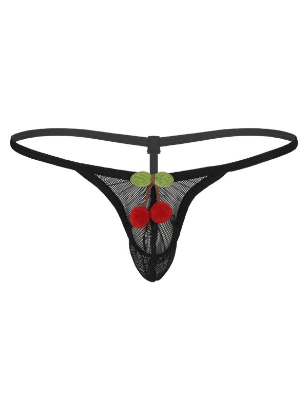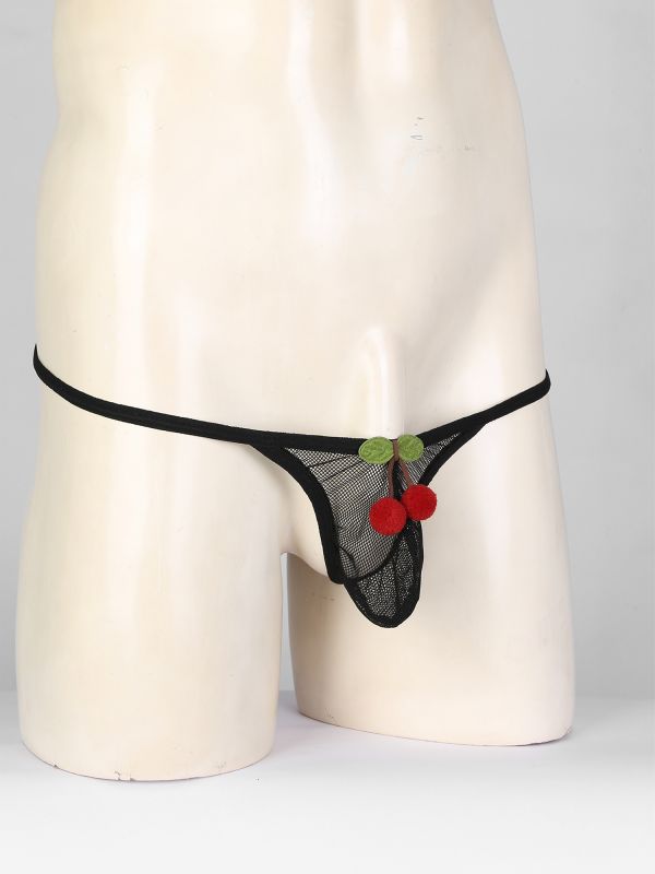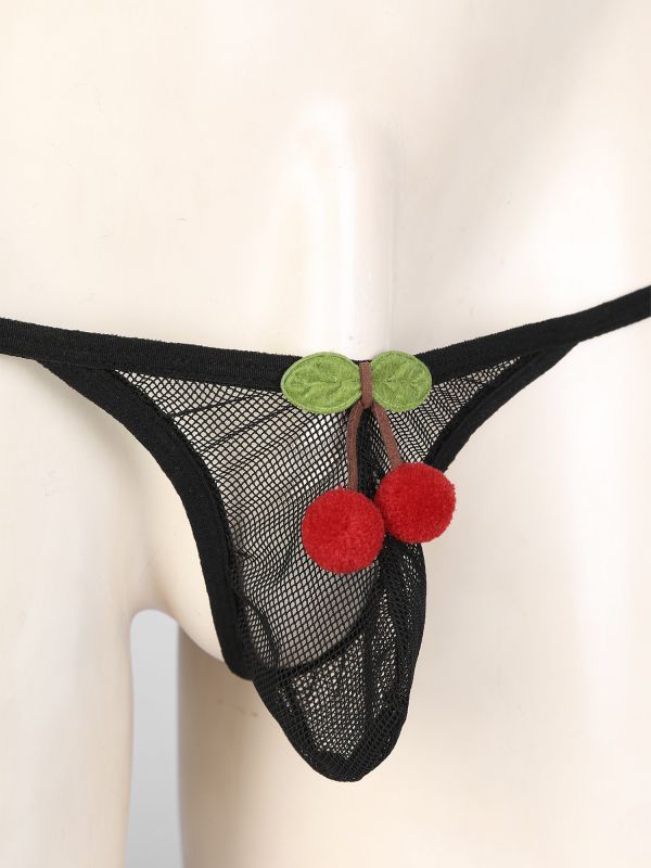 iEFiEL Mens Sissy Fluffy Balls Bulge Pouch G-string Sheer Mesh Thong Crossdressing Underwear