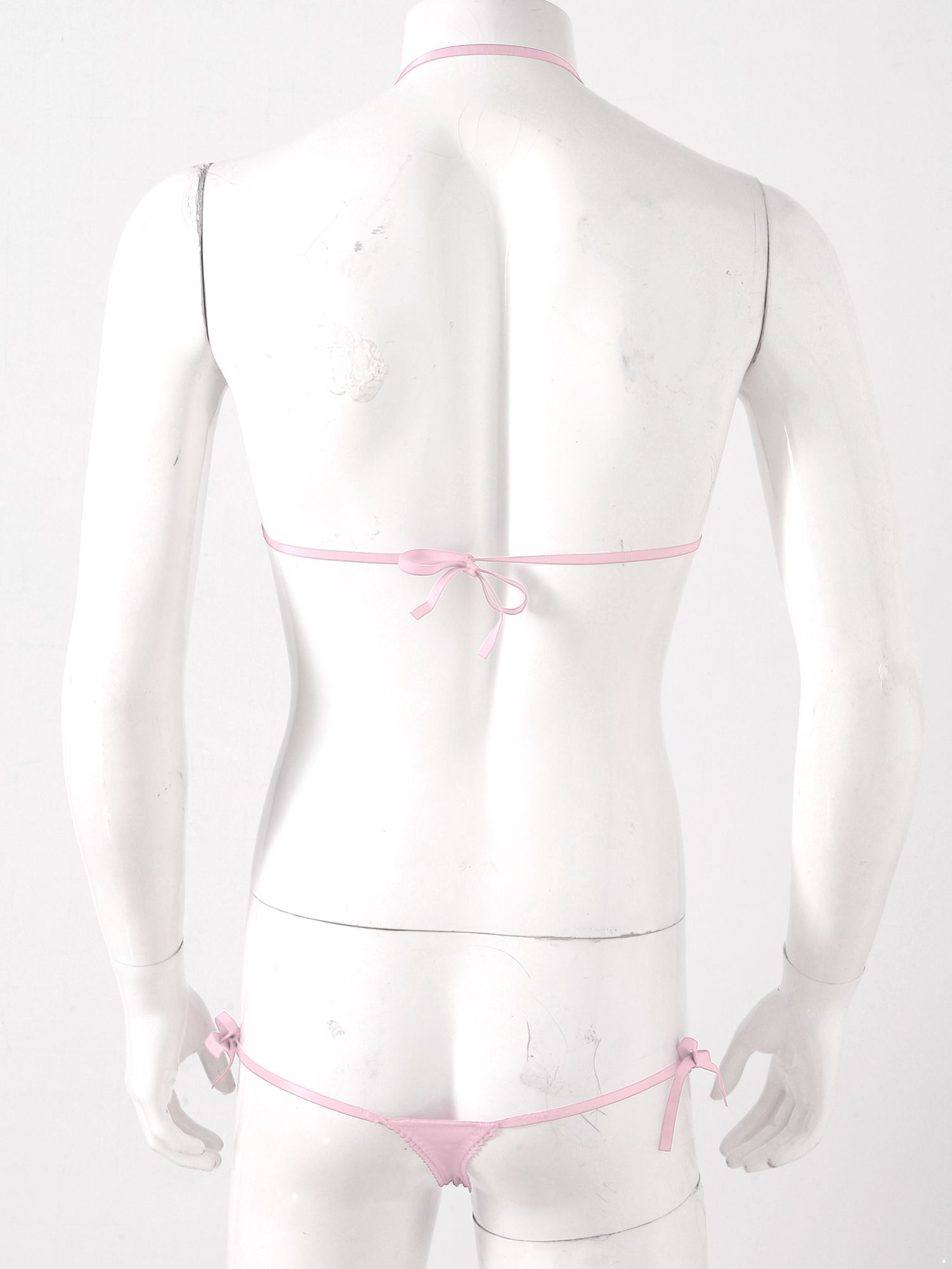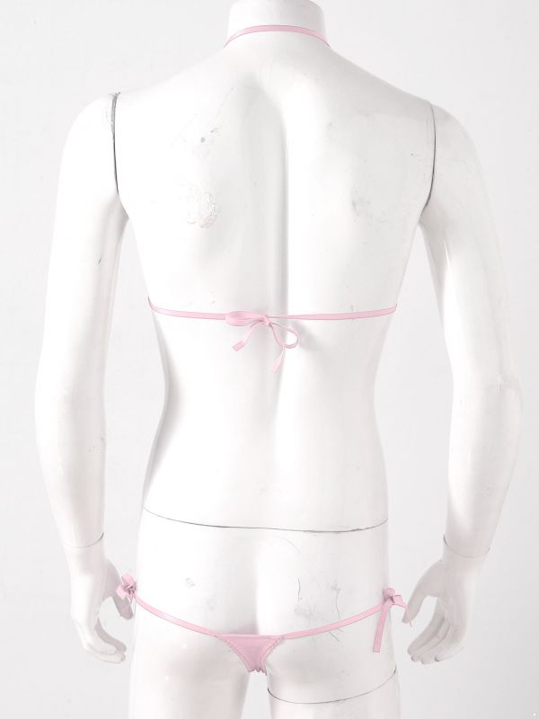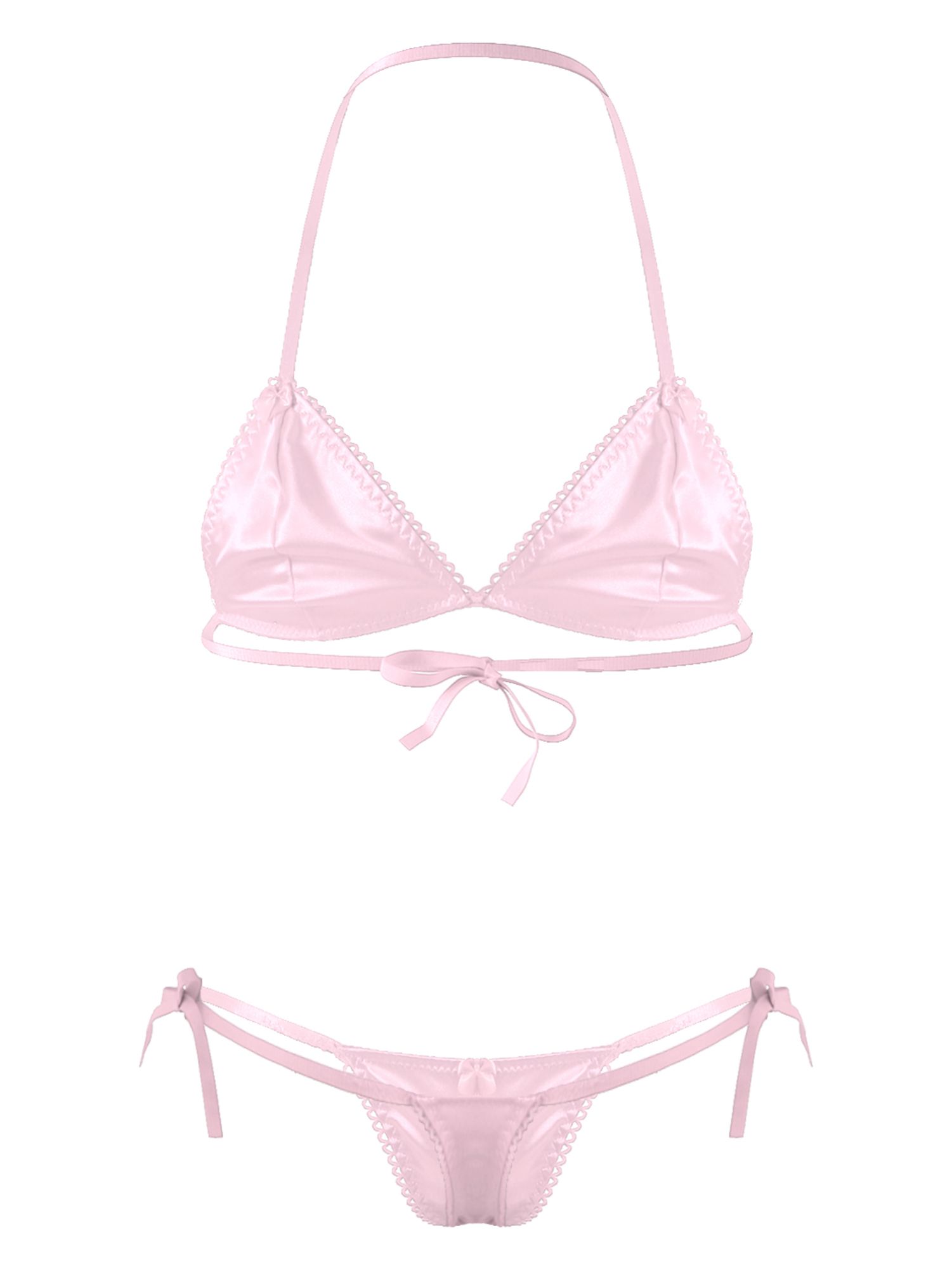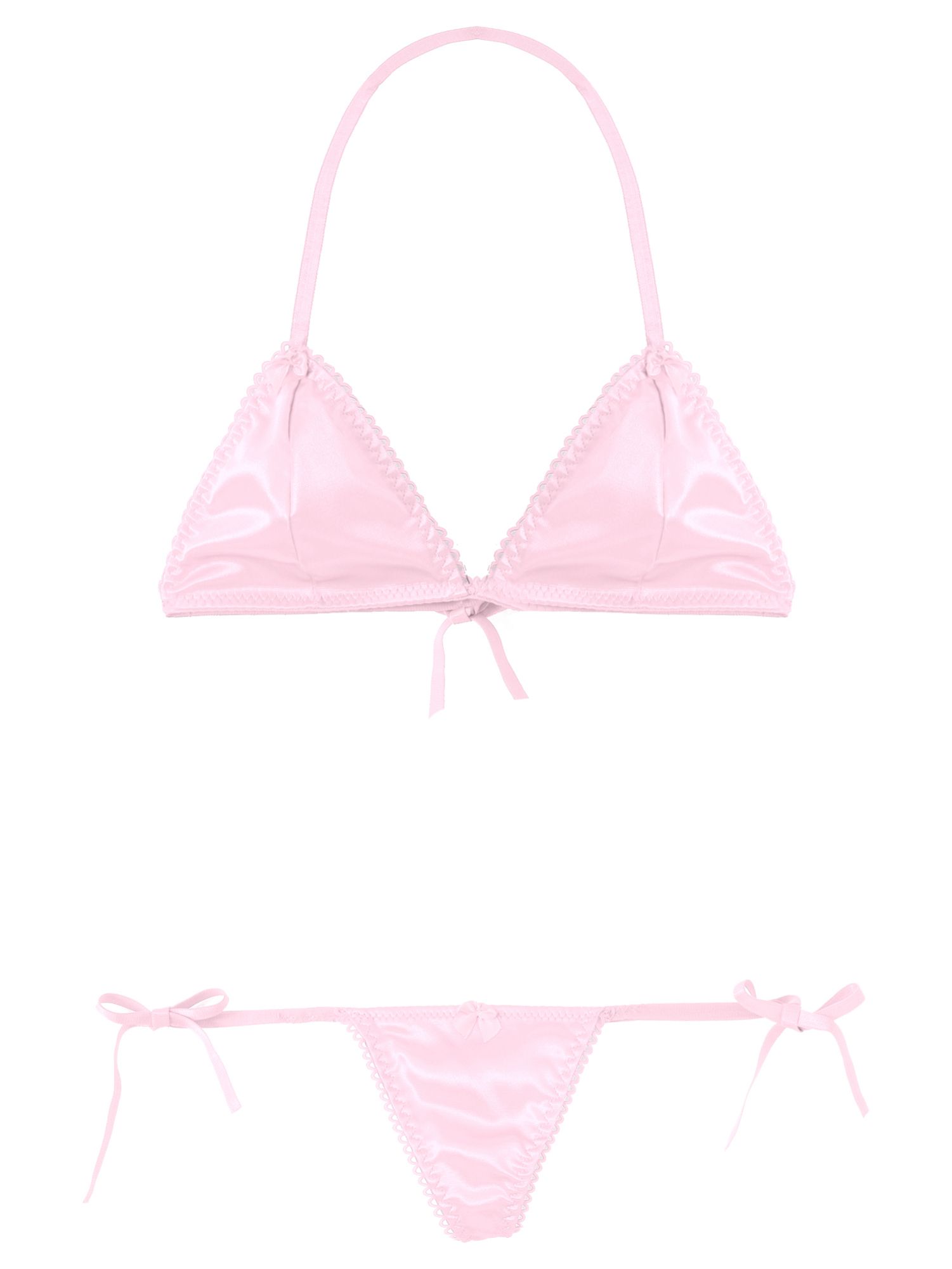Men Sissy 2pcs Satin Lace-up Wireless Bra and T-back Thongs Lingerie Set