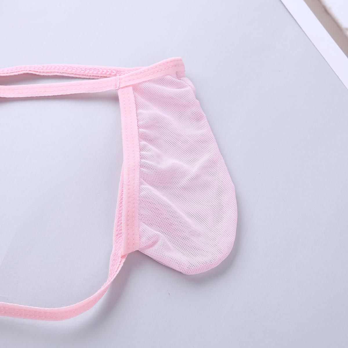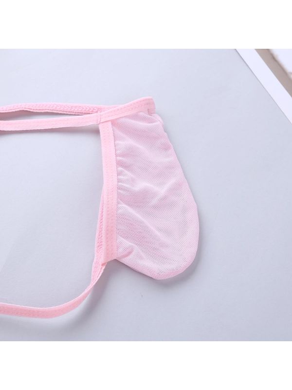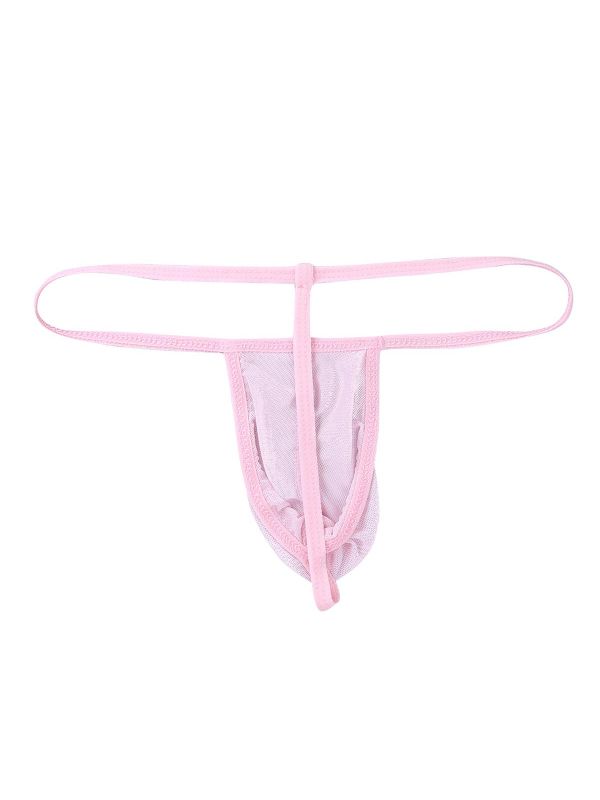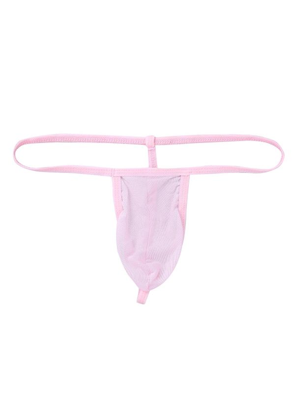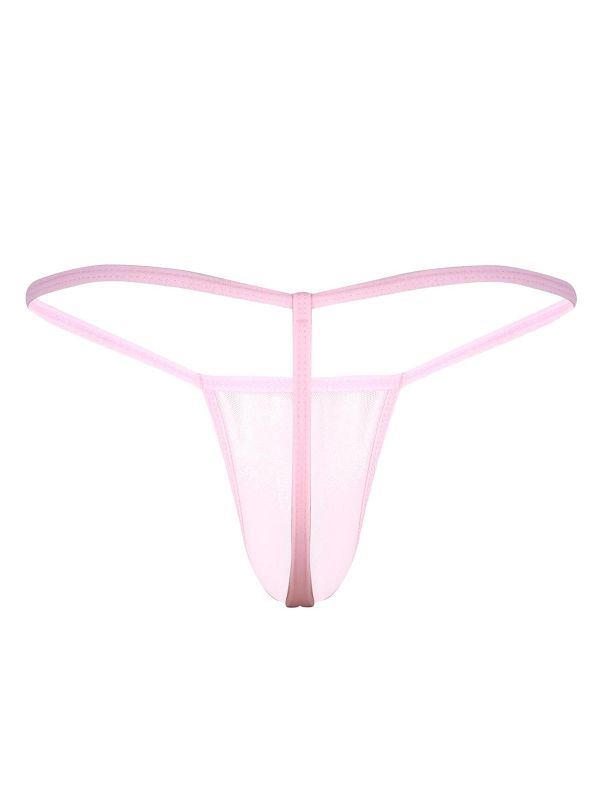 Pink Men's Sexy G-String Mesh See Through Bulge Pouch Jockstraps Micro Thong