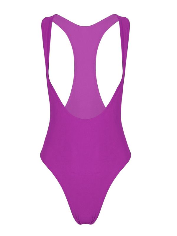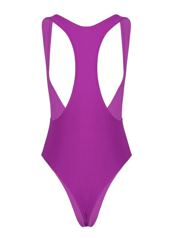 Women Sleeveless Open Chest High Cut Solid Color Bodysuit