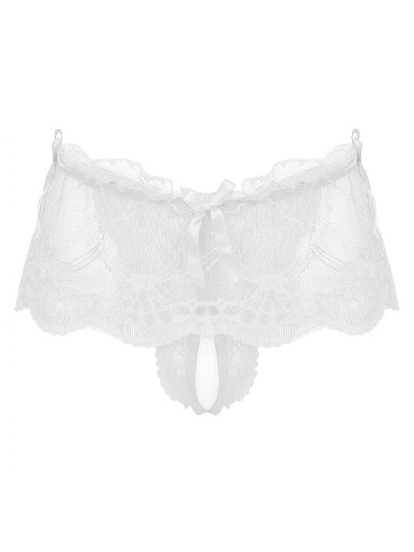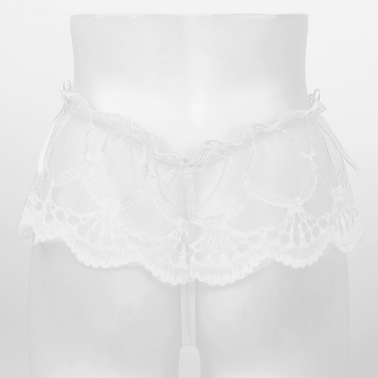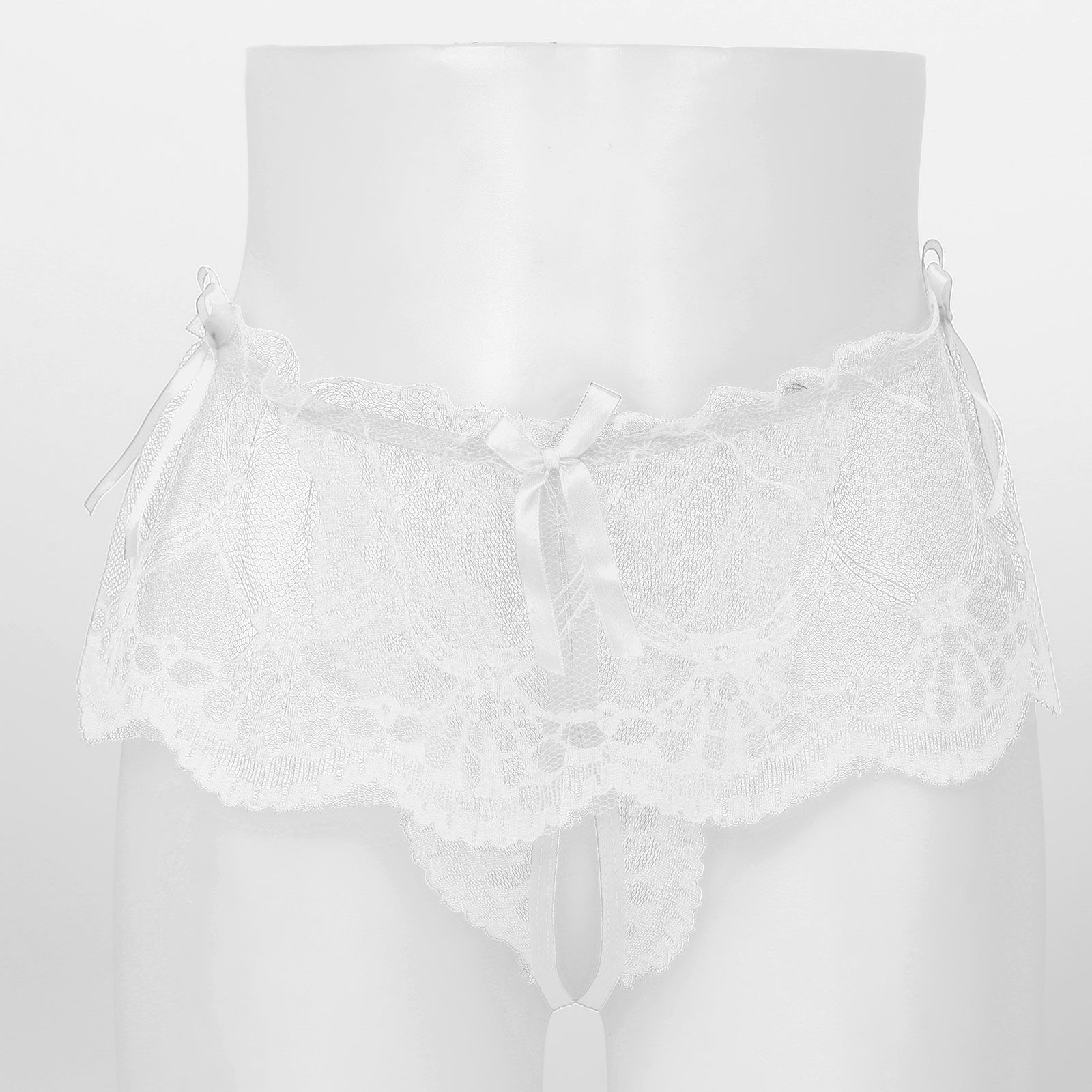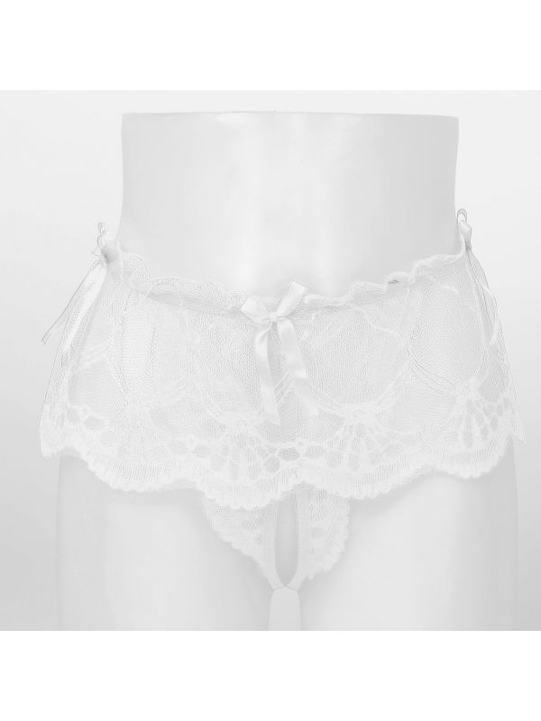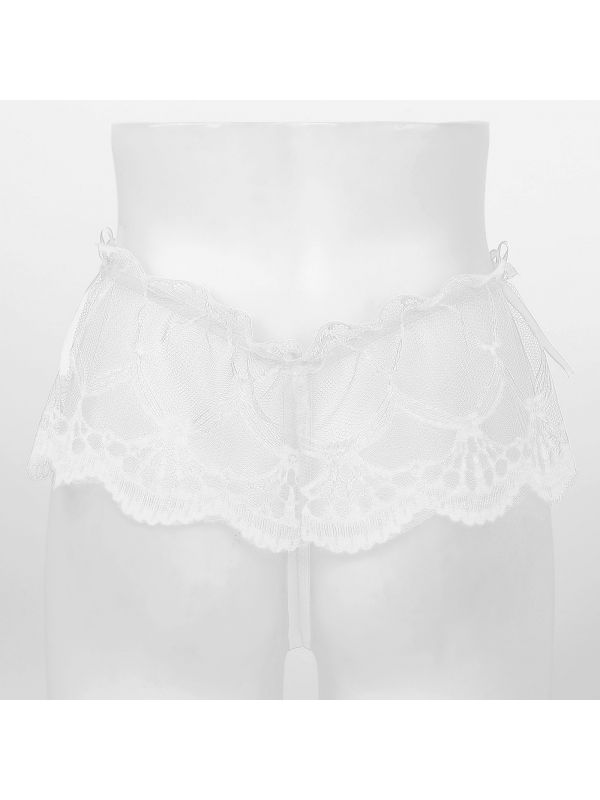 White Mens See-through Lace Crotchless Skirted Thong T-back Panties G-string Lingerie Underwear