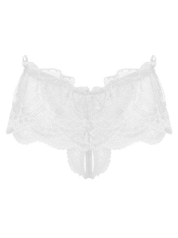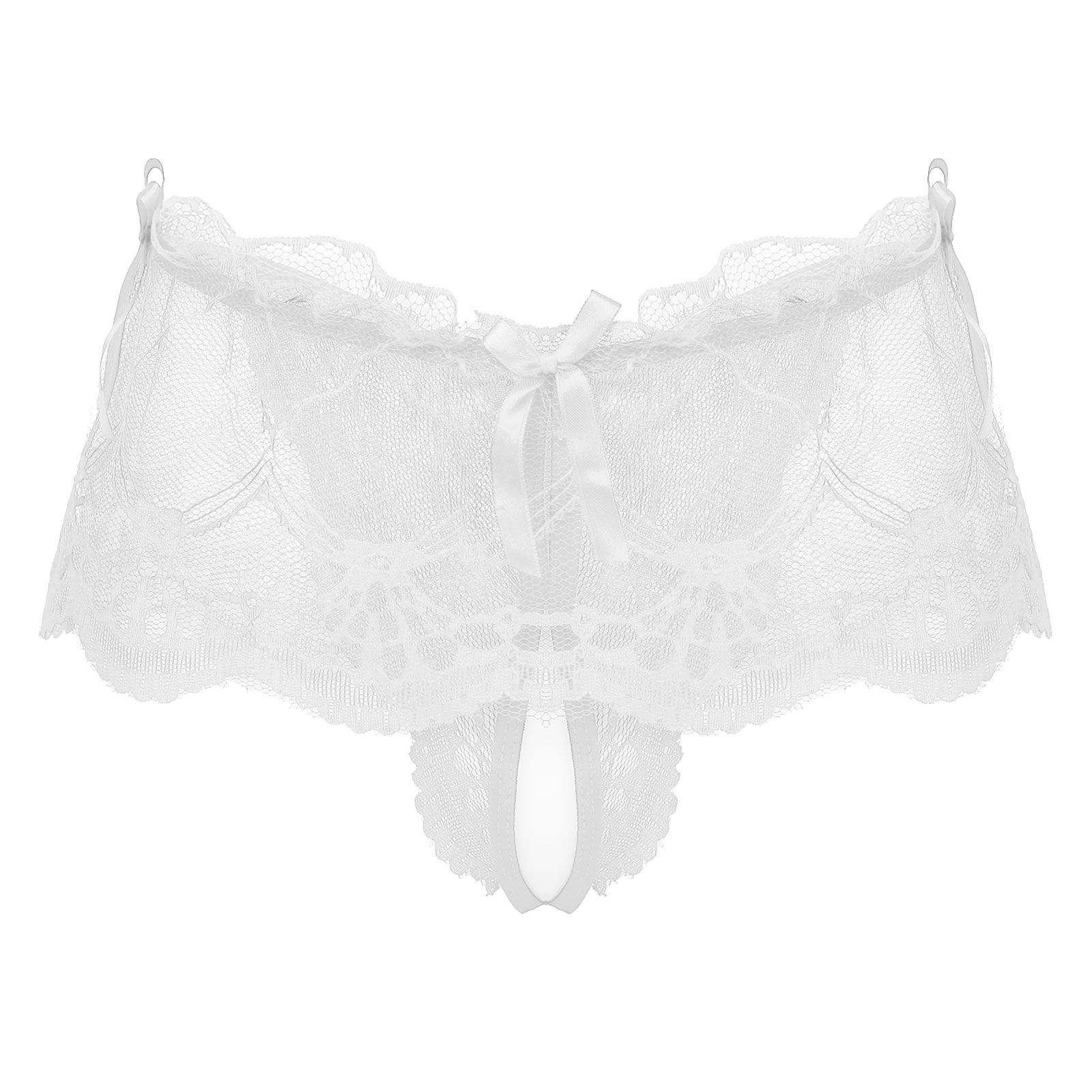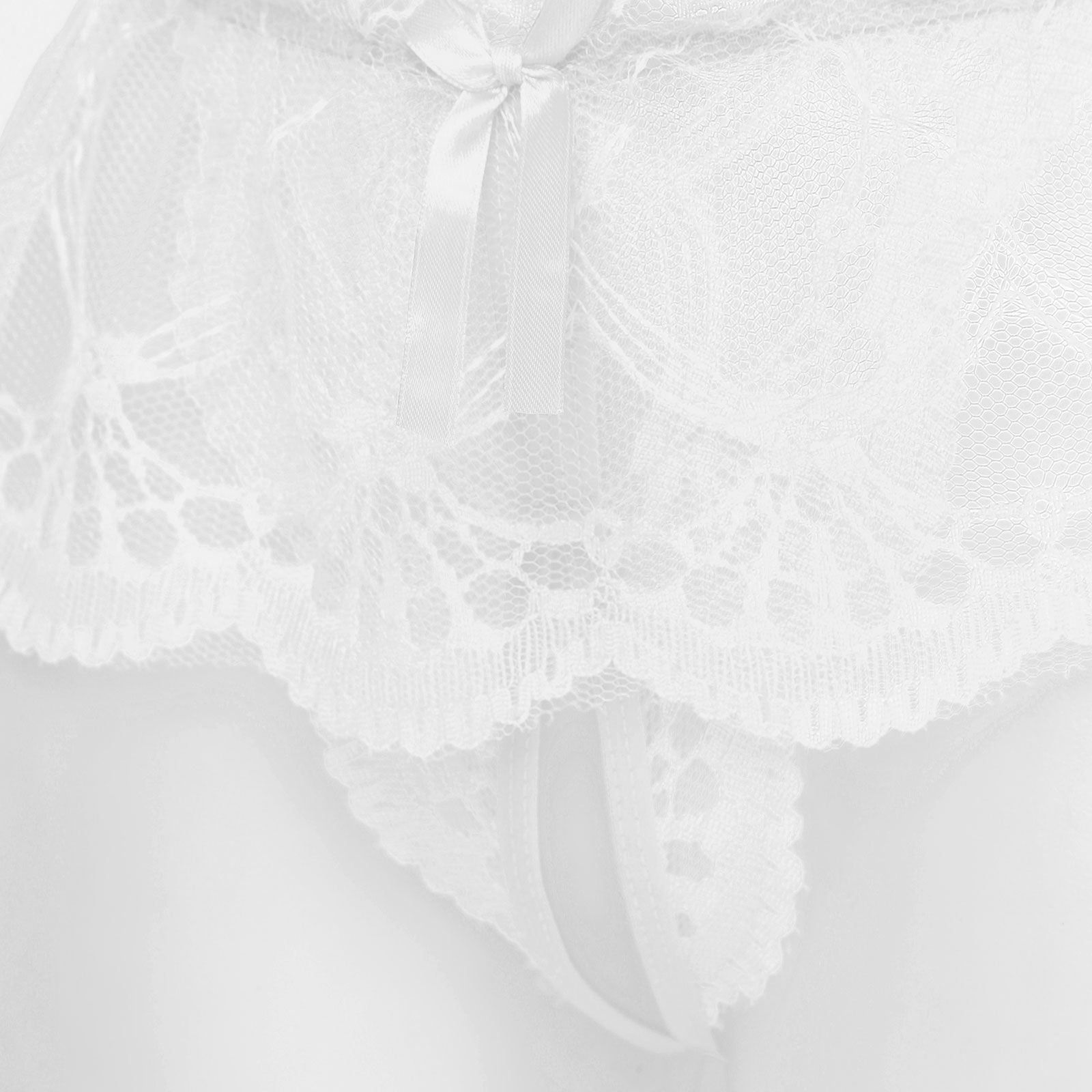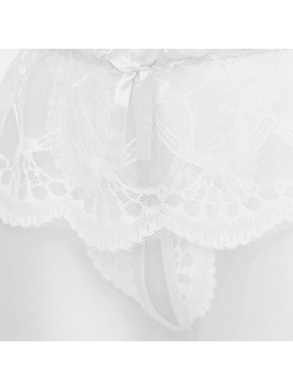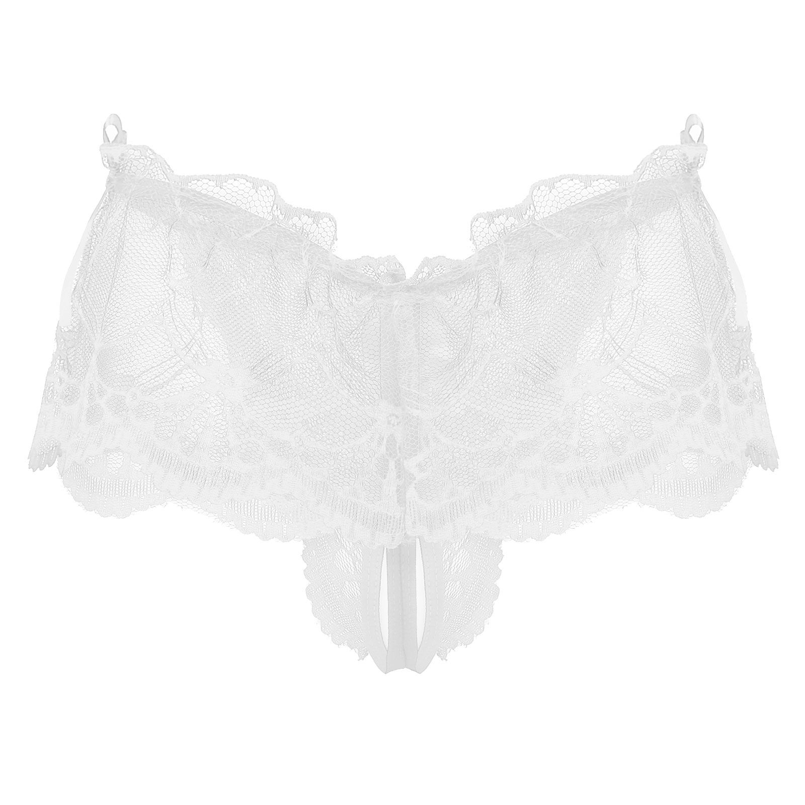 White Mens See-through Lace Crotchless Skirted Thong T-back Panties G-string Lingerie Underwear