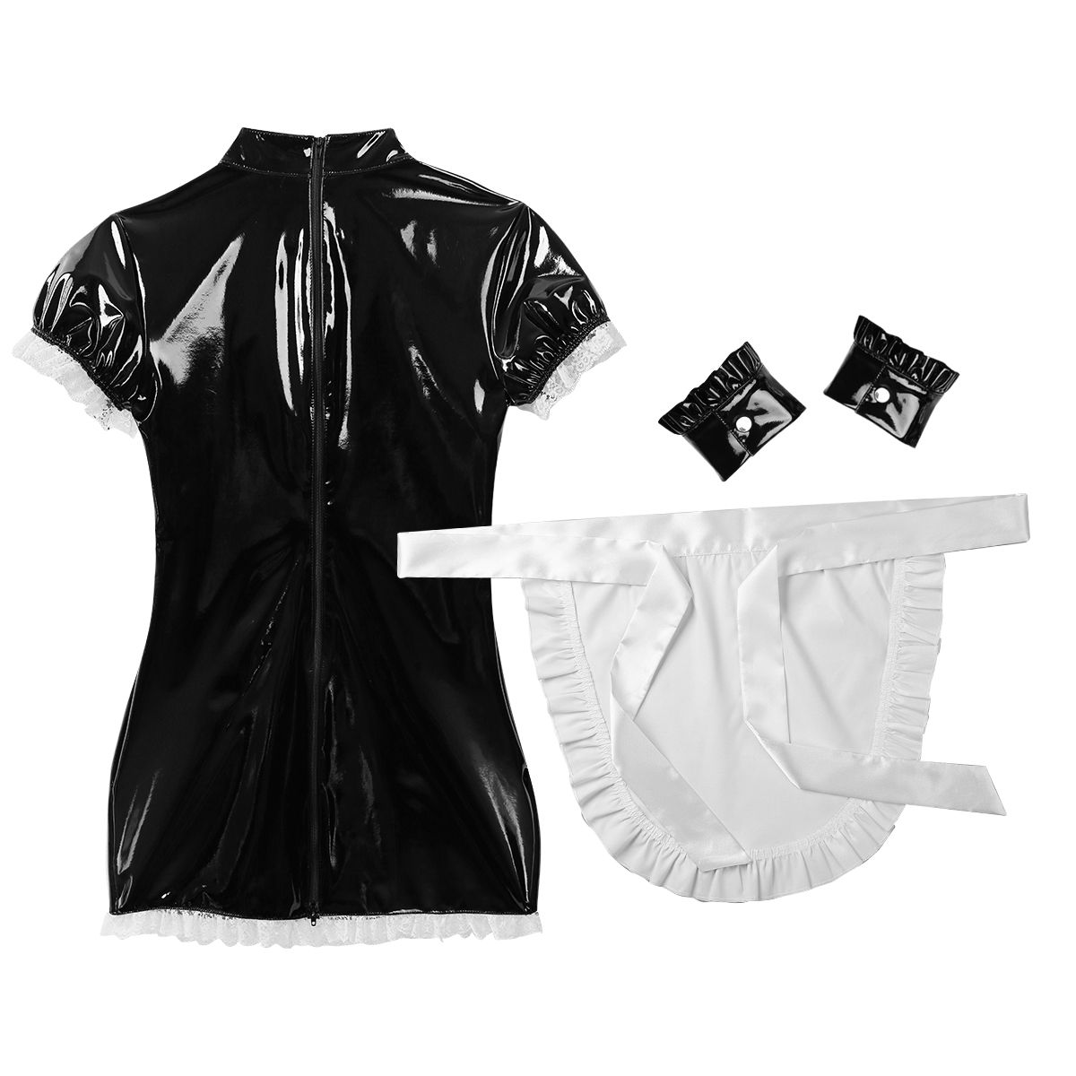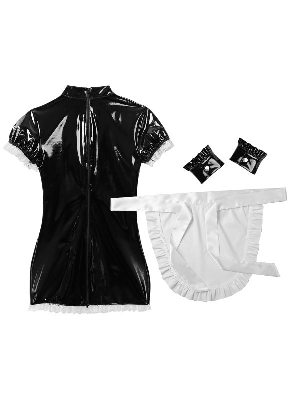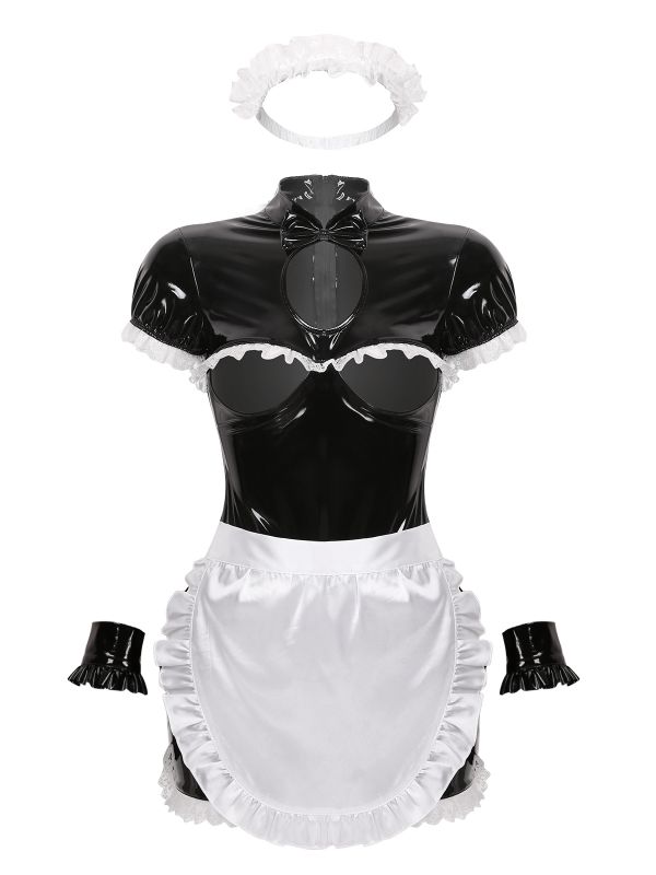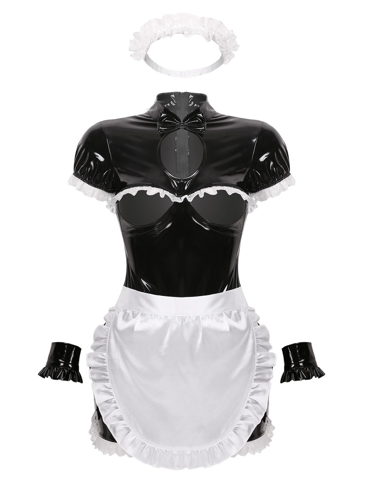 Women adults wet look patent leather maid cosplay costume outfit, makes you hot and alluring.