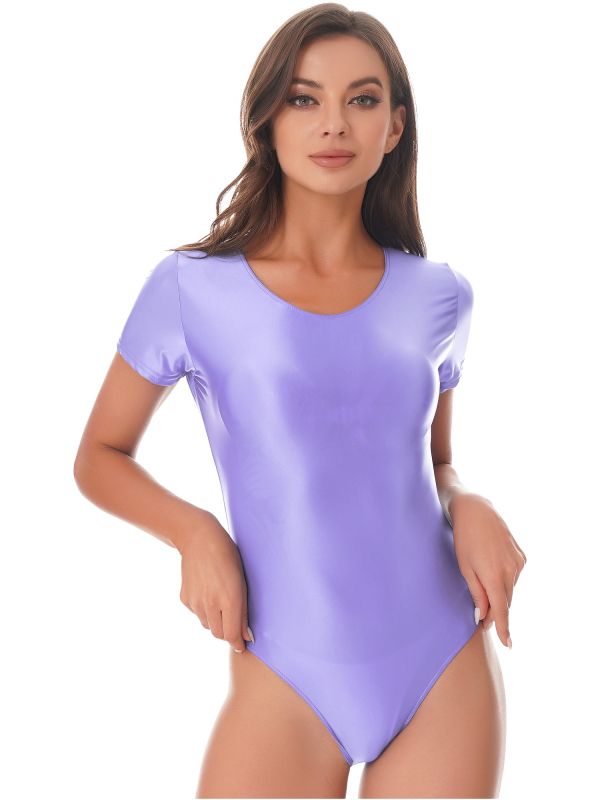 Women's Glossy One Piece Swimsuit High Cut Thong Dance Leotard