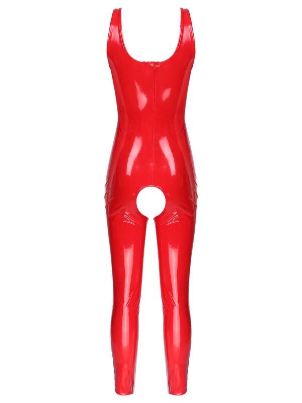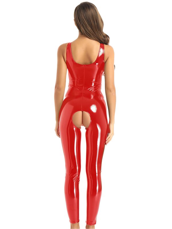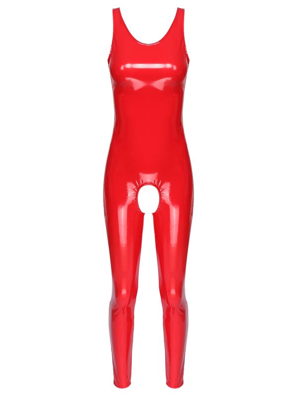 iEFiEL Women's Shiny Metallic Jumpsuit Patent Leather Sleeveless Leotard Hollowing Out Crotch Clubwear