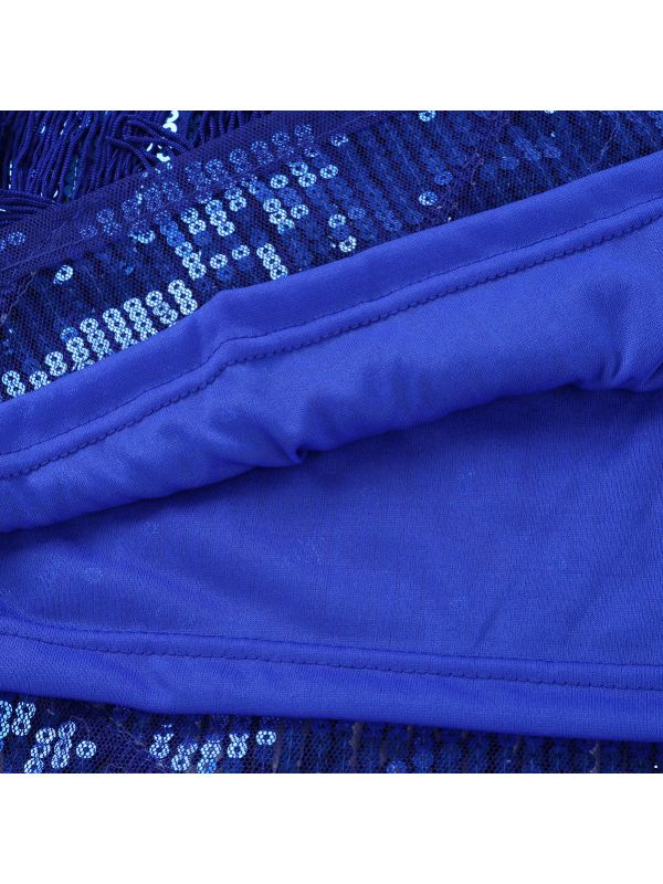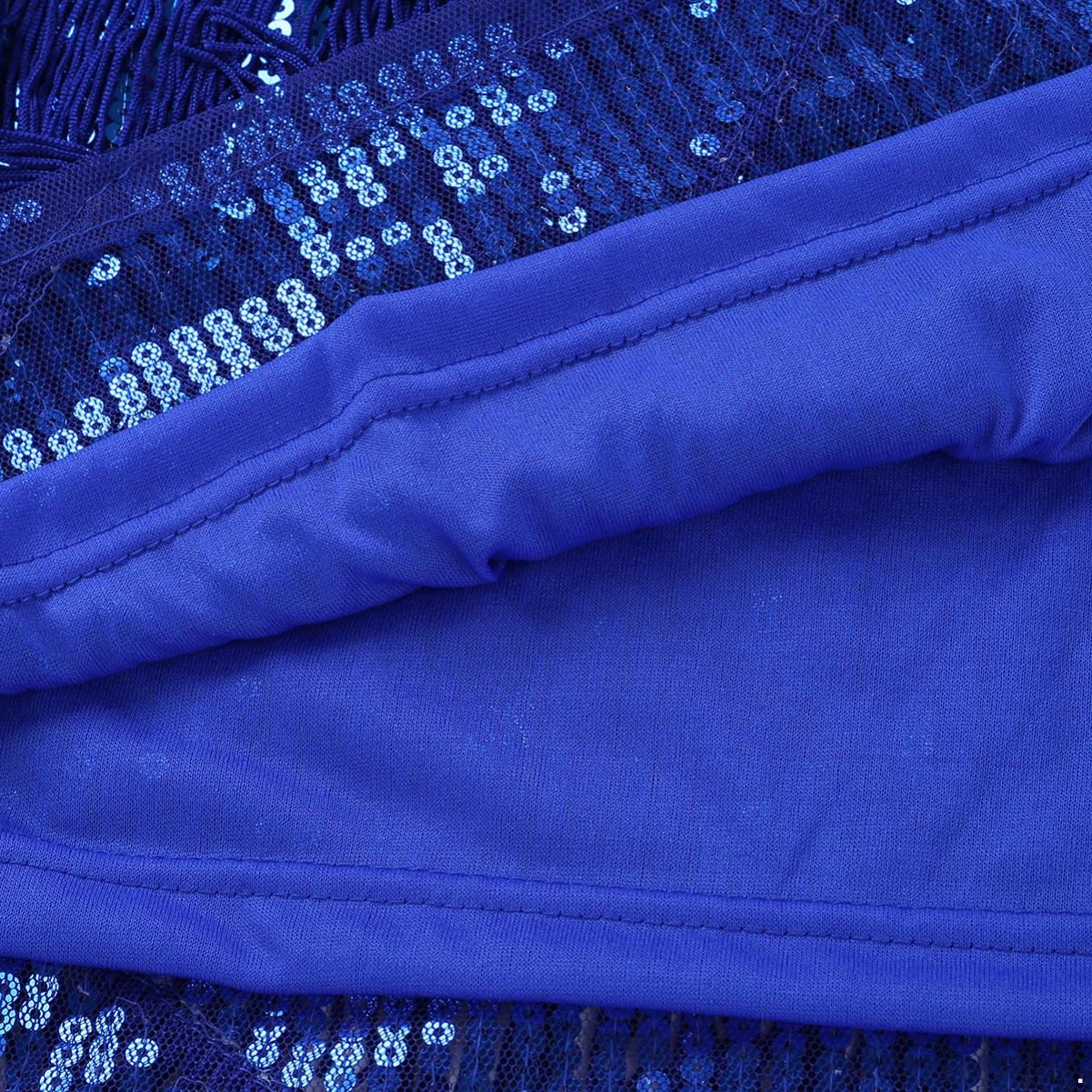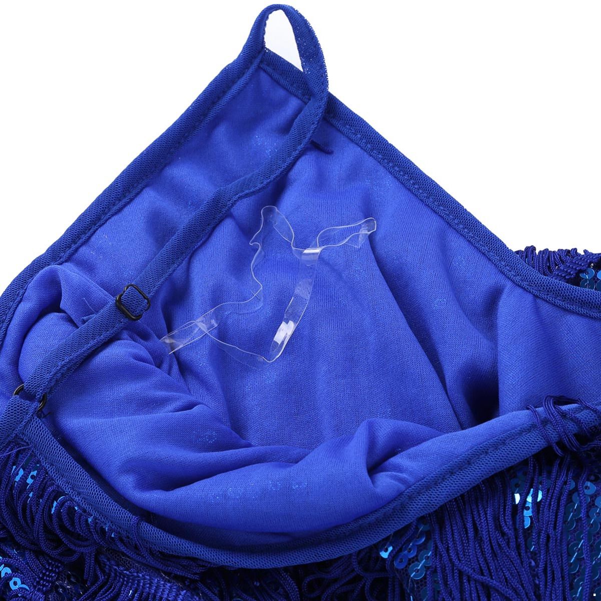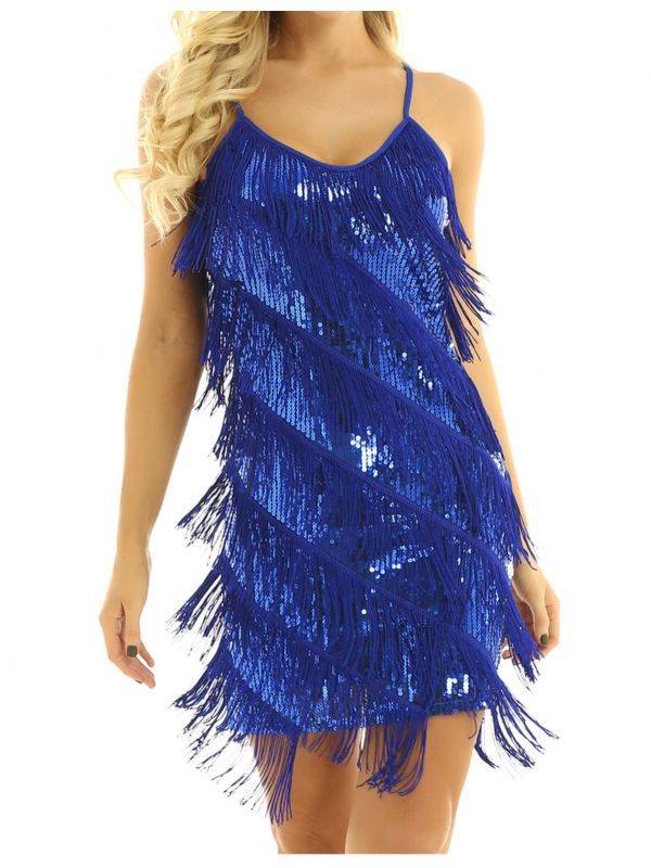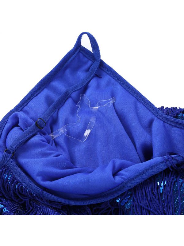 iEFiEL Women Sequins Dance Party Dress Adjustable Spaghetti Straps Fringe Tassel Latin Rumba Tango Dance Dress