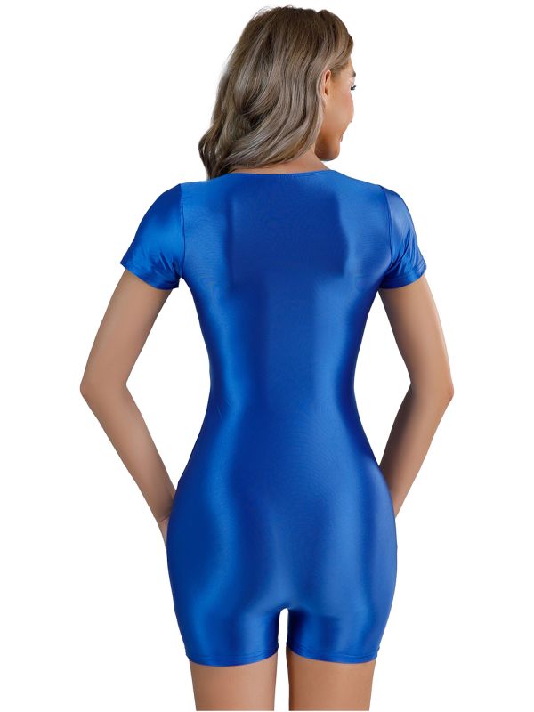 Womens 30D Oil Glossy Short Sleeve Sports Leotard