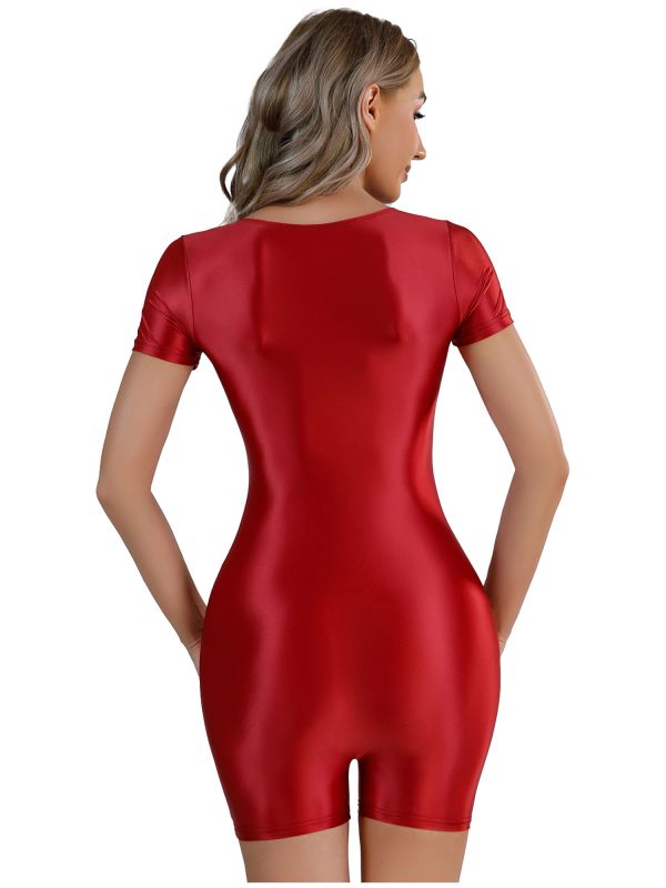 Womens 30D Oil Glossy Short Sleeve Sports Leotard