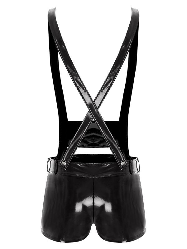 Men Patent Leather Adjustable Suspender Overalls Romper Club Wear