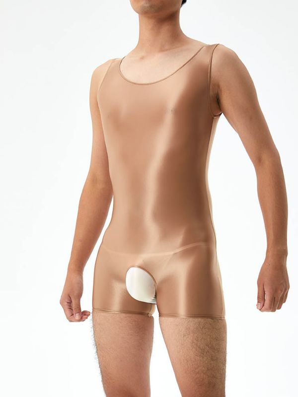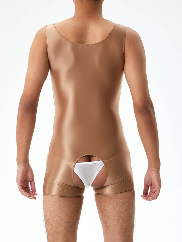 Men's Oil Glossy Crotchless Wrestling Singlet Bodysuit