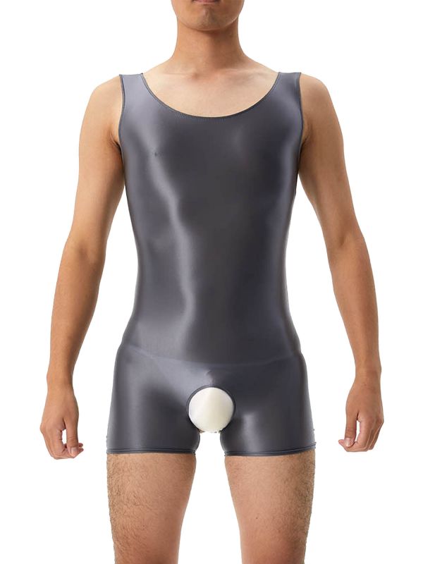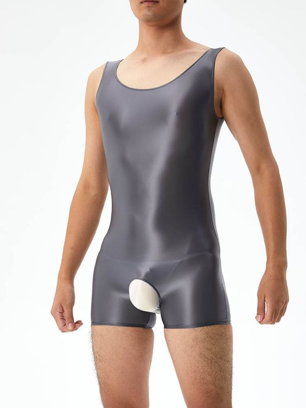 Men's Oil Glossy Crotchless Wrestling Singlet Bodysuit