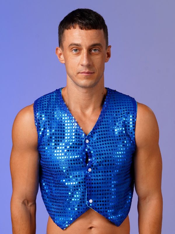 Men's Shiny Sequins Vest Jacket Waistcoat Top