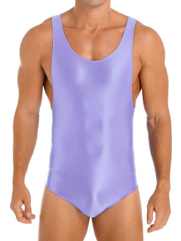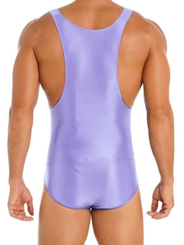 Men Shiny Glossy One Piece Swimsuit