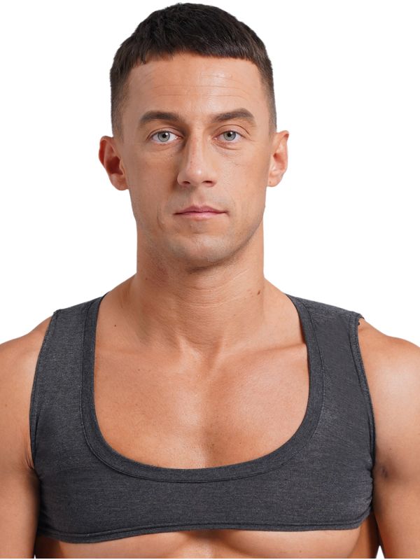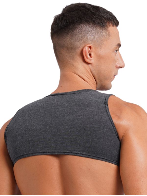 Men Sexy Scoop Neck Sleeveless Solid Color Crop Top Vest for Bodybuilding