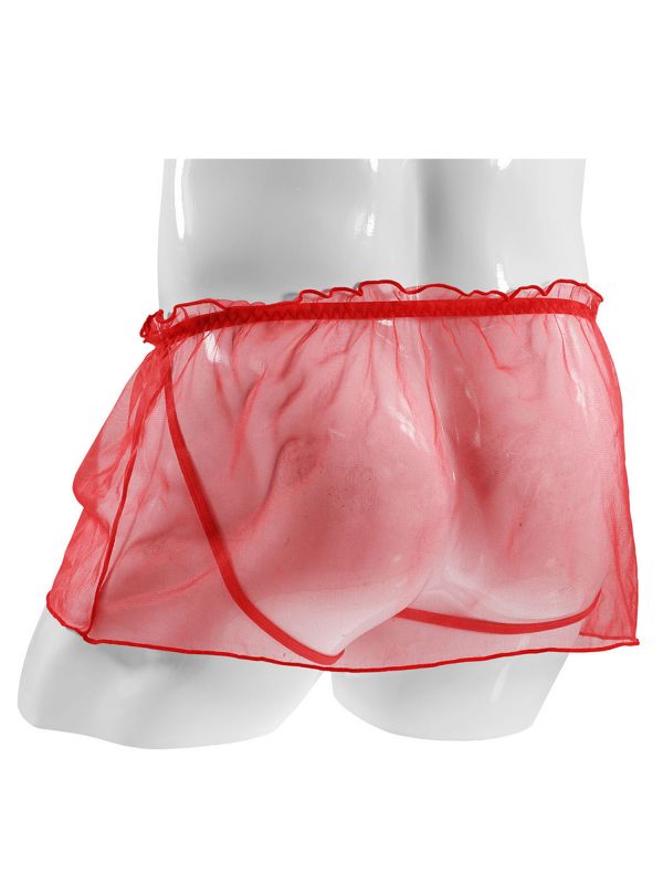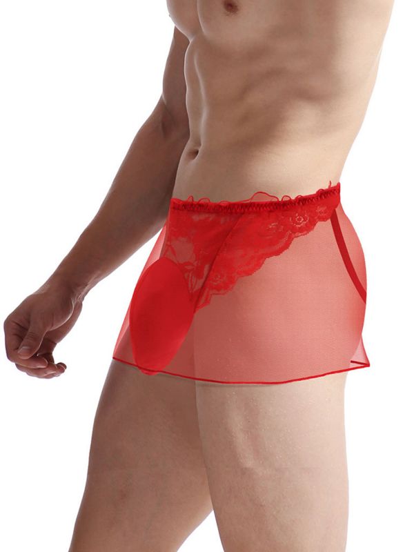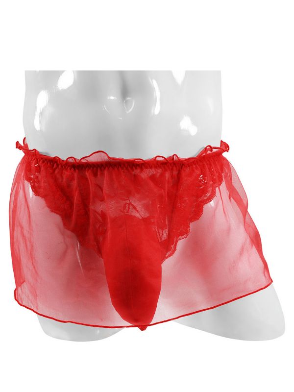 Mens Lace Skirted Bulge Pouch Thong Sissy Underwear
