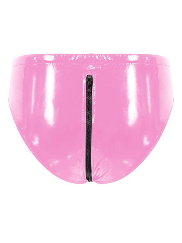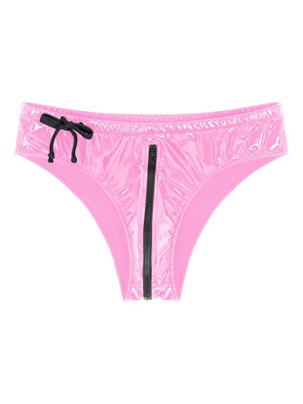 Mens Wet Look Patent Leather Drawstring Zipper Briefs Underwear