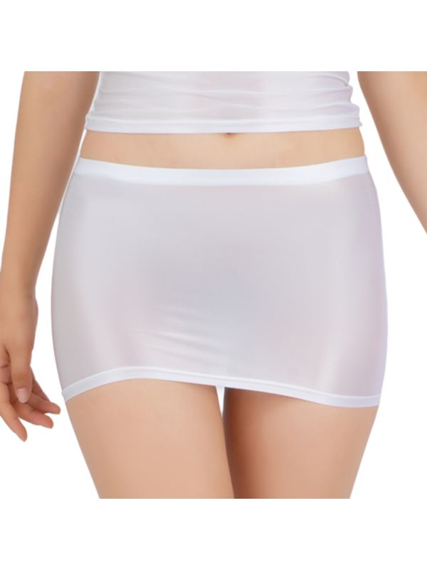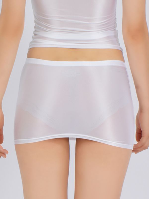 Women Glossy Low Rise Solid Color Bodycon Mini Skirt