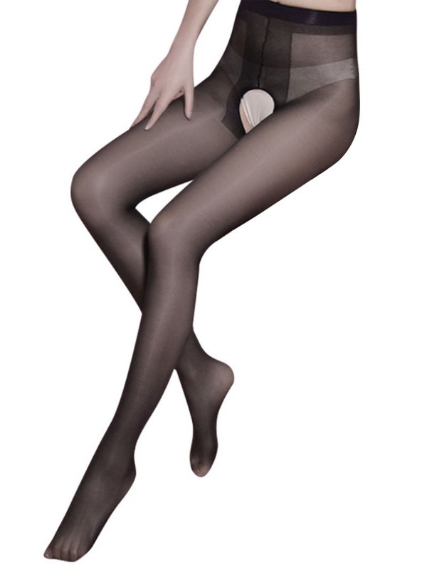 Women High Waist Sheer Silky Open Crotch Sexy Stockings