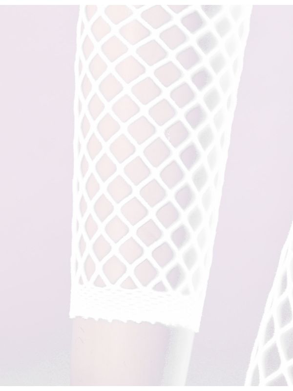 Women's White Hollow Out Fishnet Bodysuit Lingerie Scoop Neck Long Sleeves Crotchless Closed Toes Stretchy Full Body Stocking Sexy Underwear
