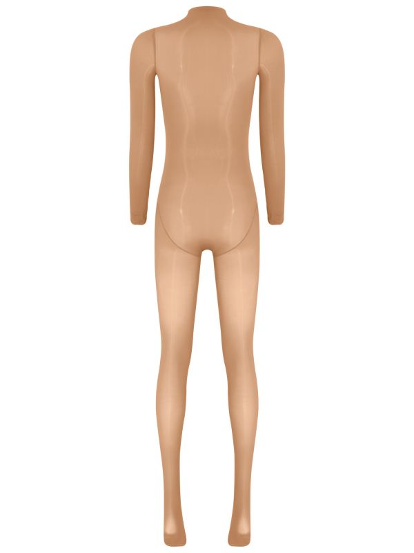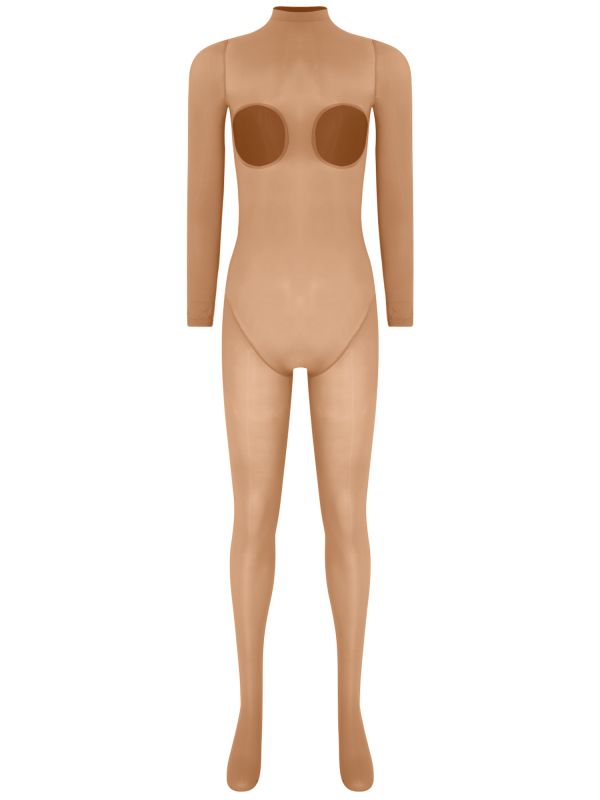 Women Long Sleeve Open Breast Footed Seamless Jumpsuit Bodystockings