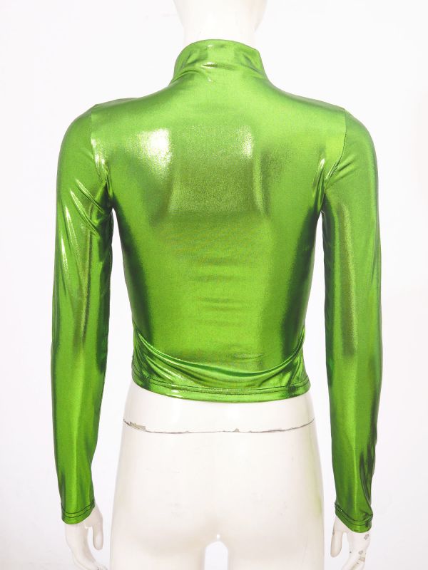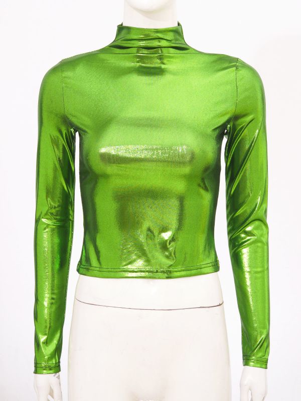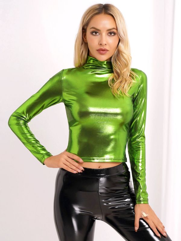 Metallic shiny t-shirt make you stand out in the crowd, it can better highlight your body with jeans, skirts, hot pants or leggings.