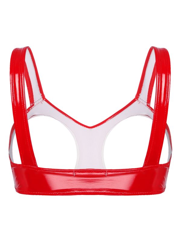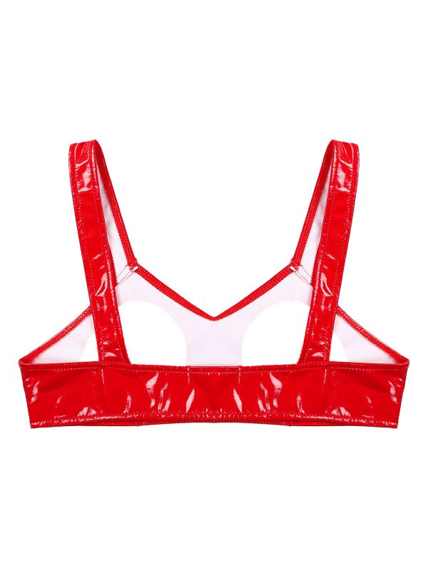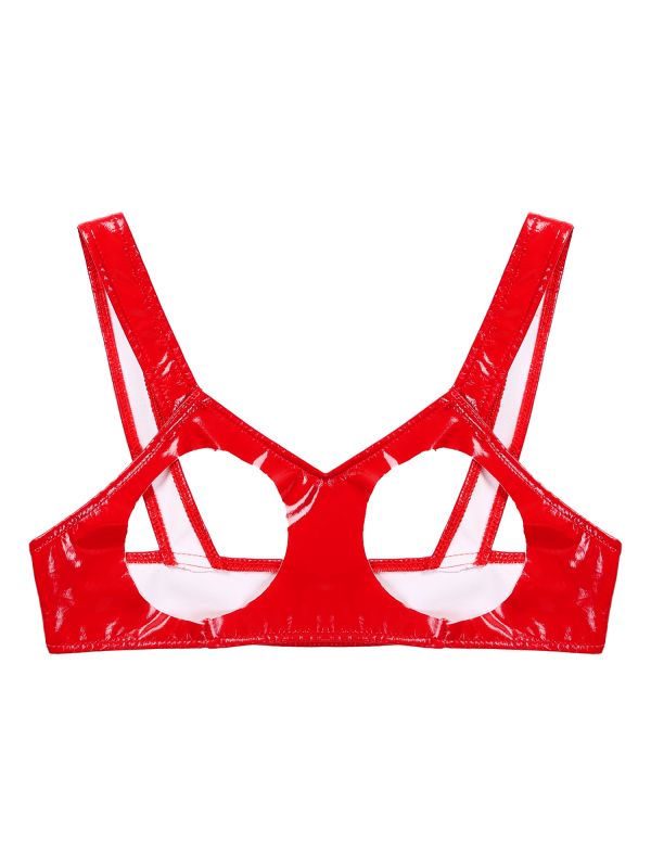 Women's Patent Leather Hollowing Out Wet Look Cupless Bra