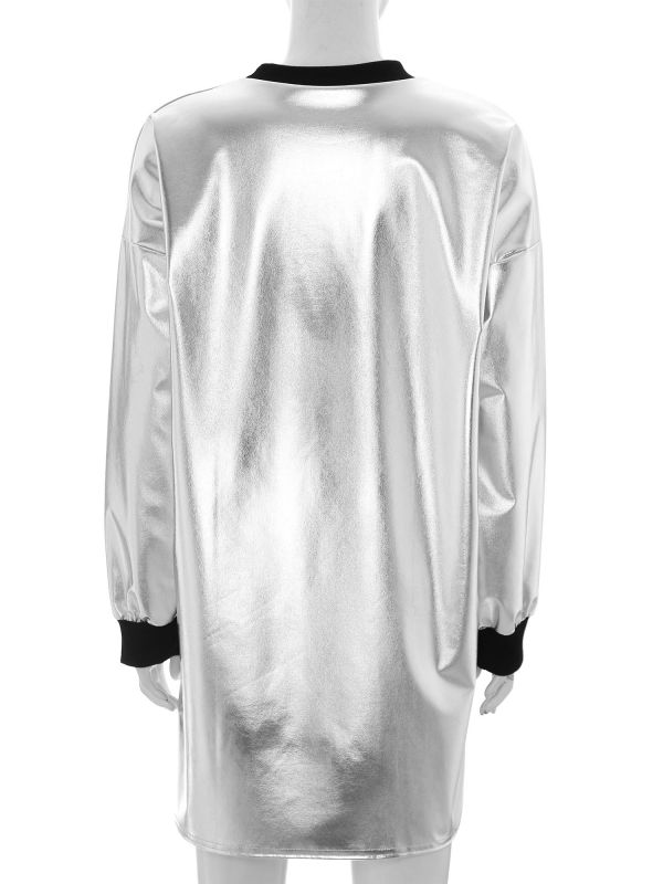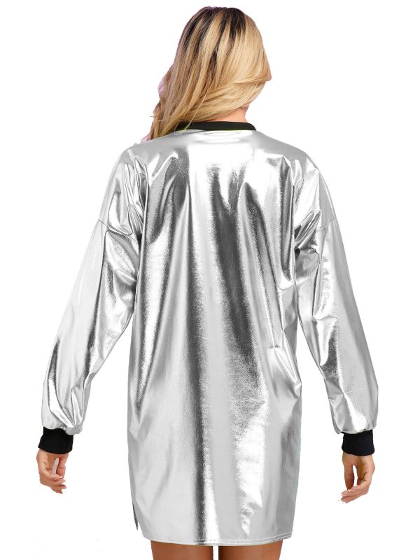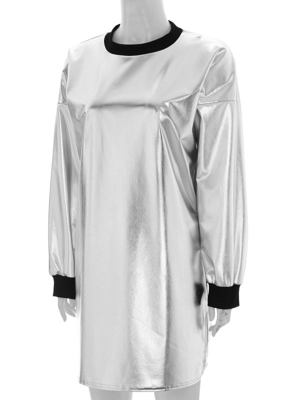 Women's Plus Size Metallic Long Sleeve Round Neck T Shirt Dress