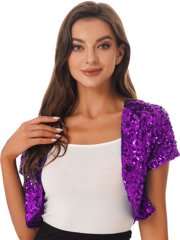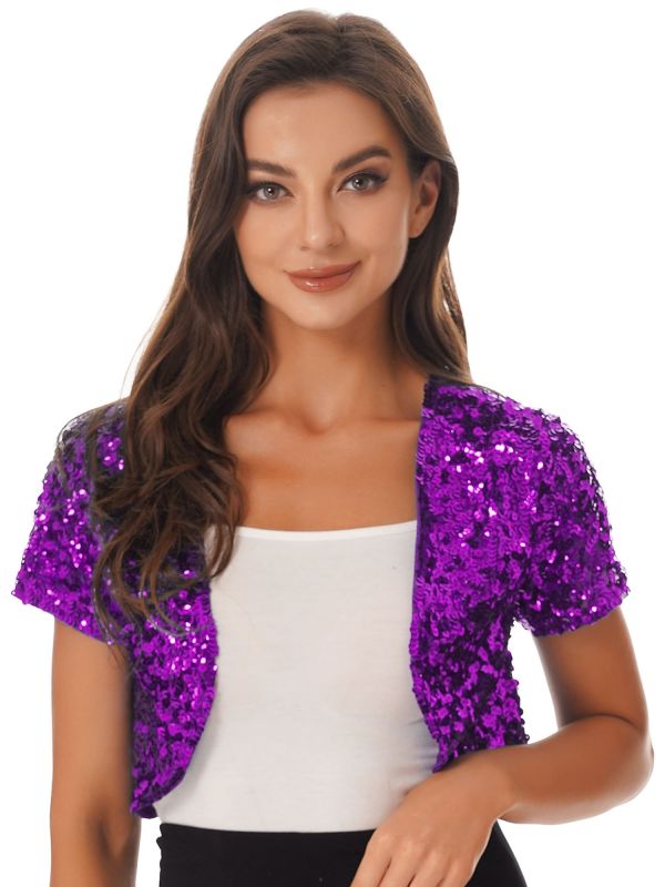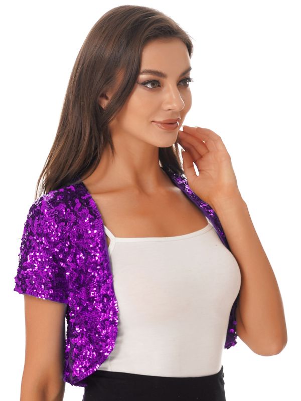 Women's Sequin Open Front Crop Cardigan