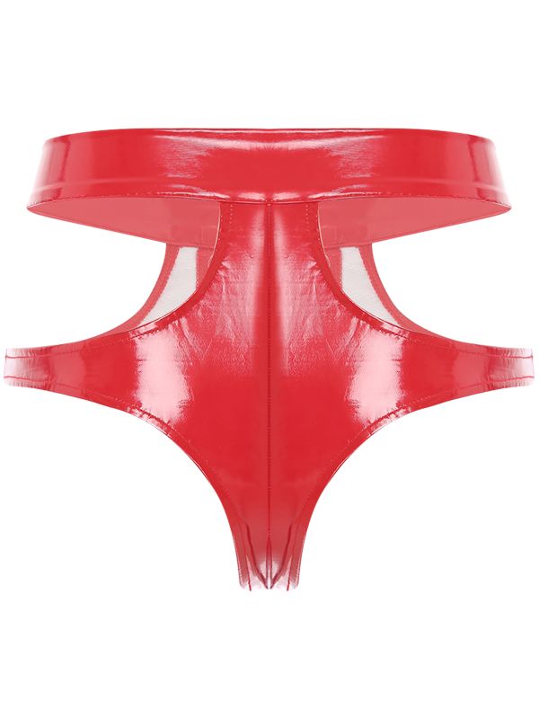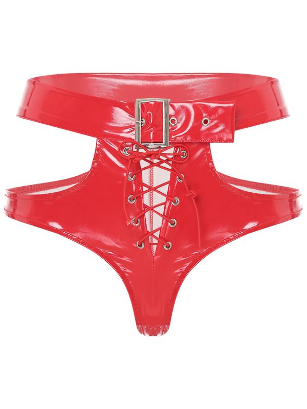 Women Patent Leather Cutout Lace-up Booty Shorts for Rave Party Clubwear