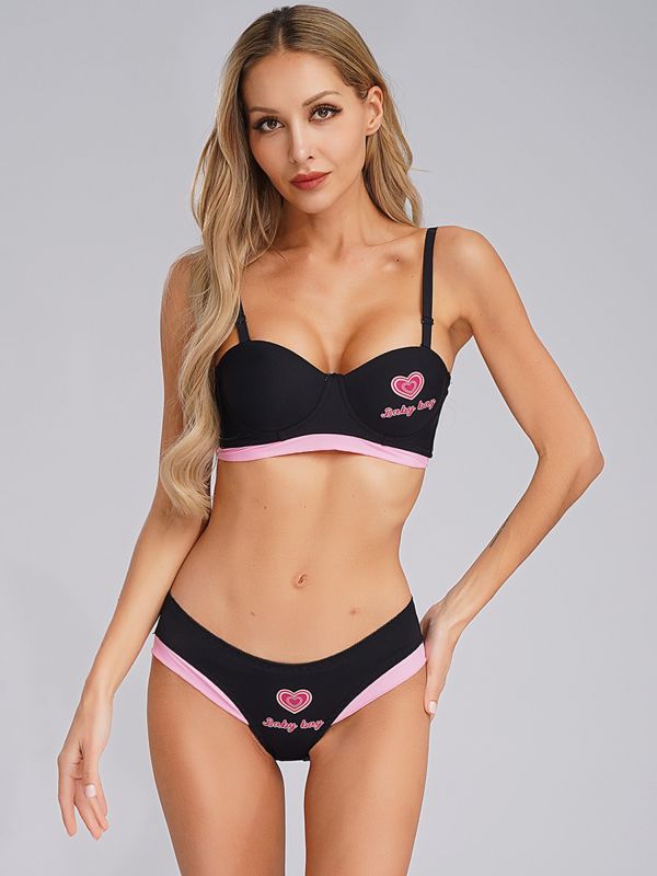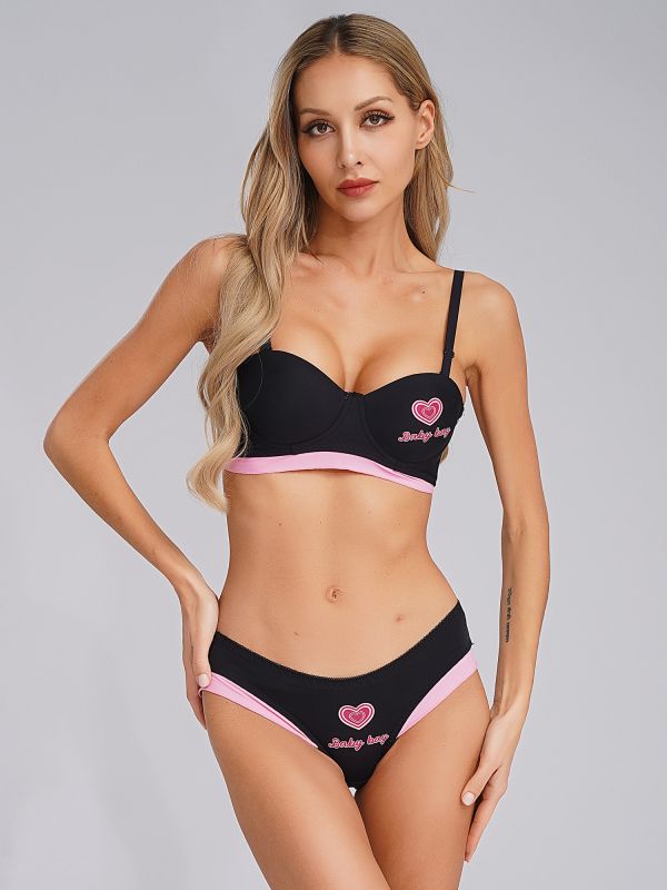 Women Two Pieces 3/4 Cup Push Up Wireless Bra and Briefs Lingerie Set