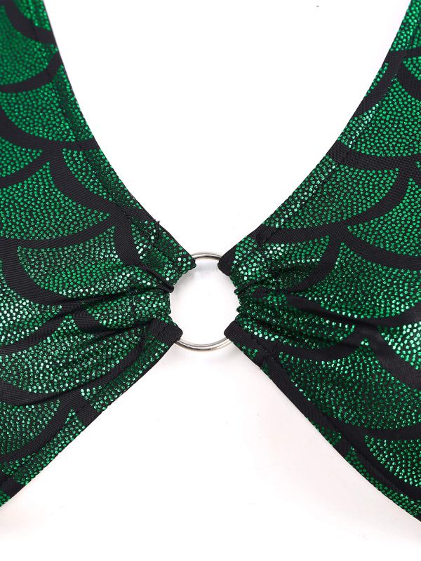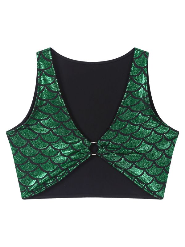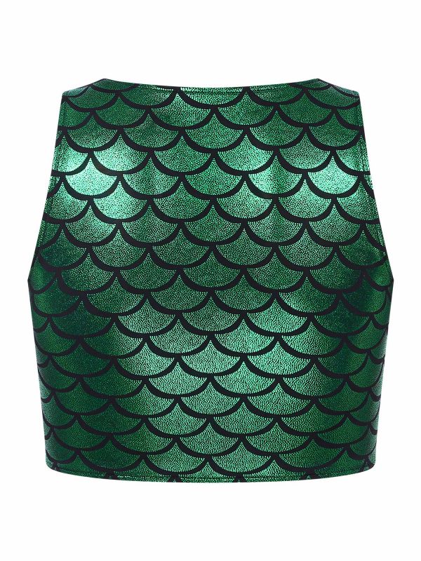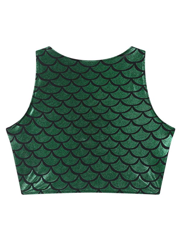 Women Sexy Deep V-neck Fishscale Print Metallic Crop Tank Top