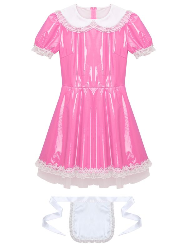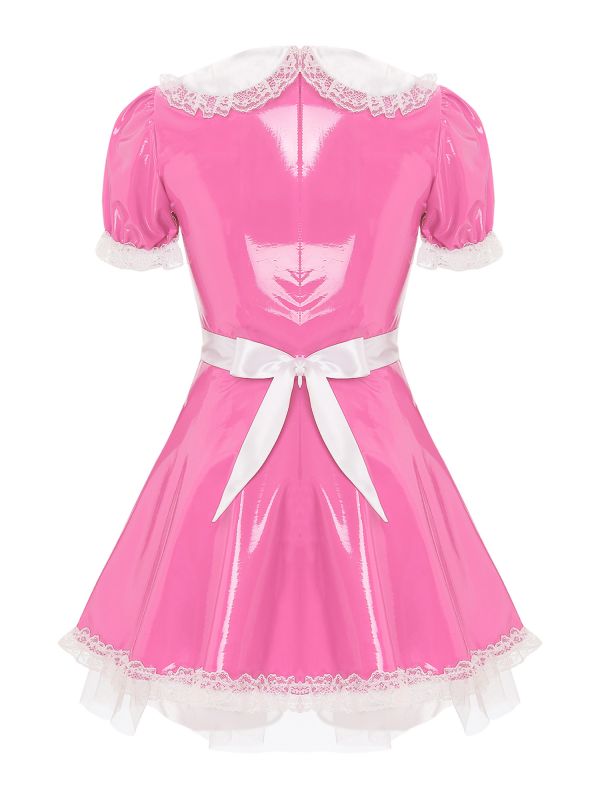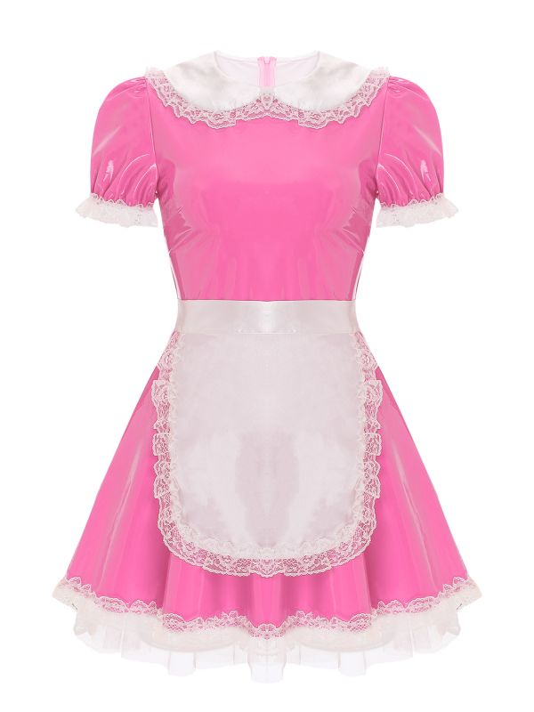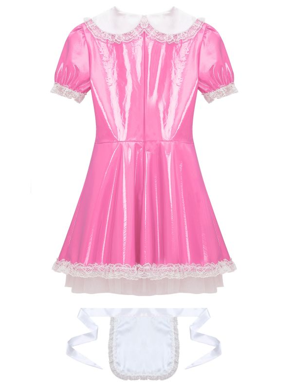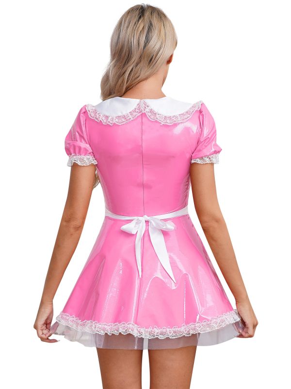Womens French Maid Cosplay Costume Wetlook Dress
