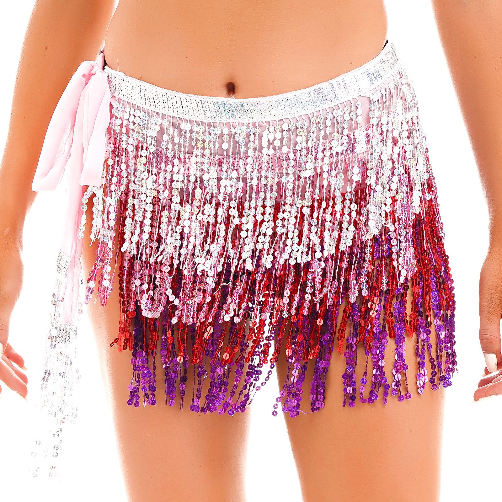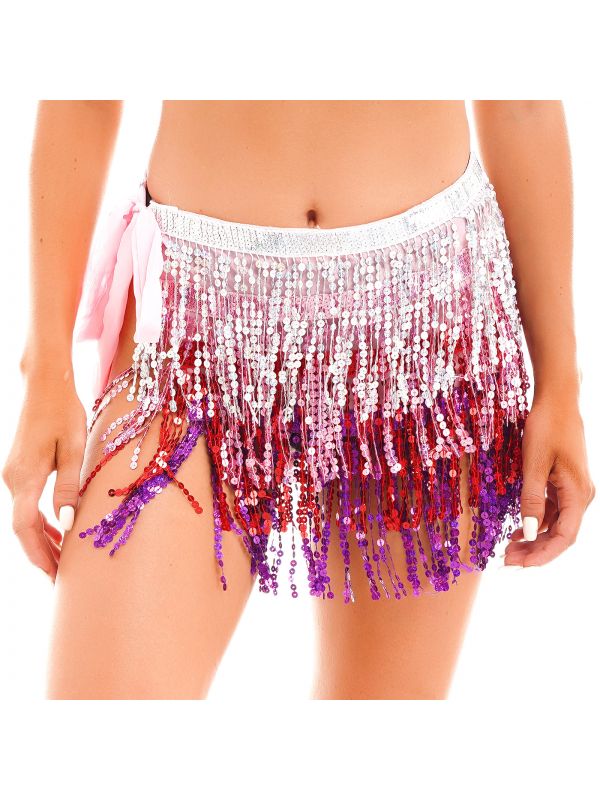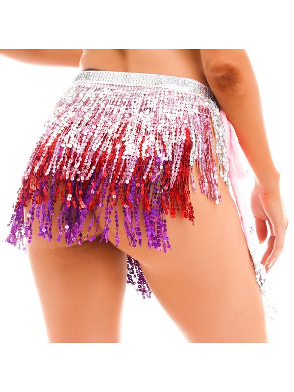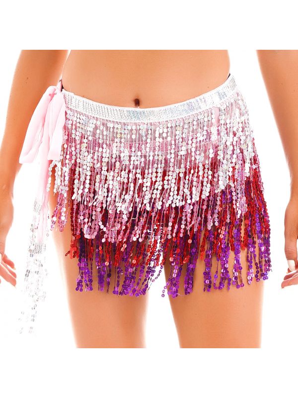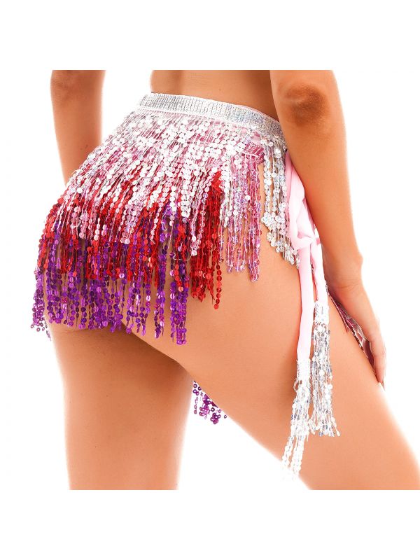Women Sequins Tassels Hip Scarf Miniskirt for Belly Dance Nightclub