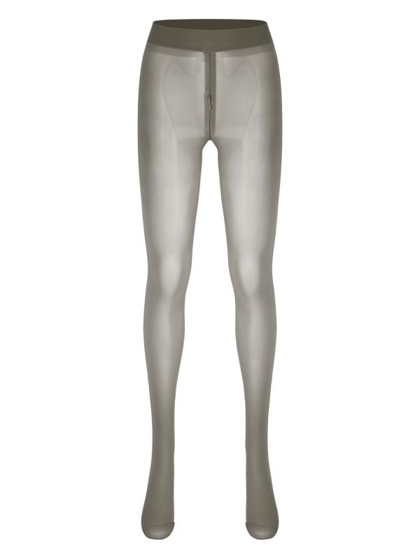 Womens High Waist Tights Zipper Crotch Mesh Pantyhose
