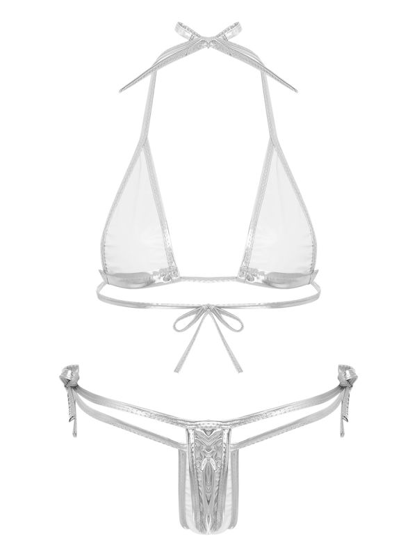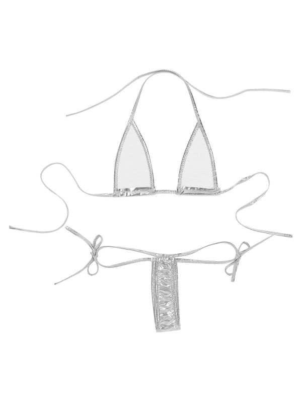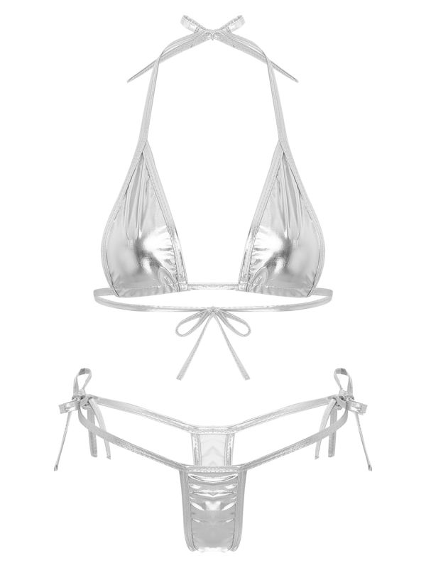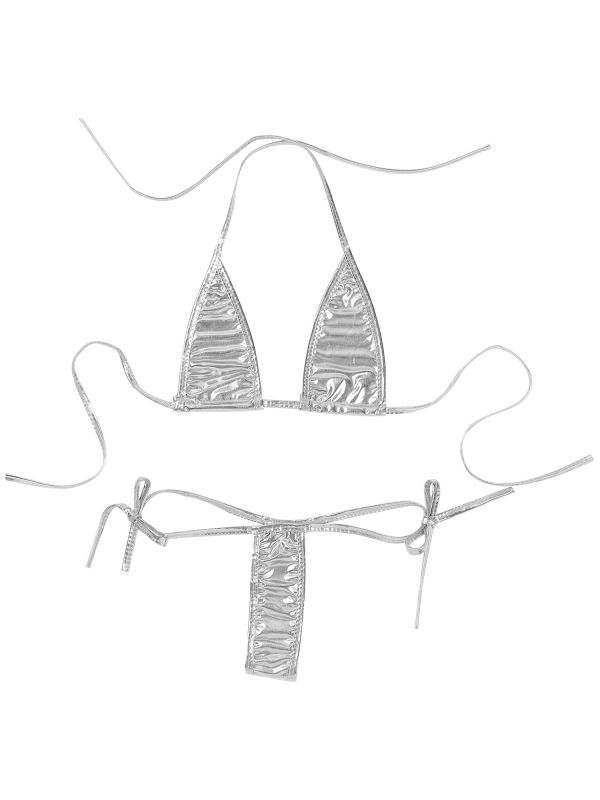 Womens Metallic Shiny 2Pcs Extreme Micro Bikini Set