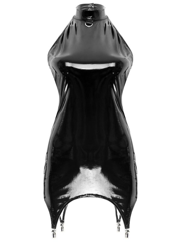 Womens Sleeveless Patent Leather Bodycon Dress with Garter Clips