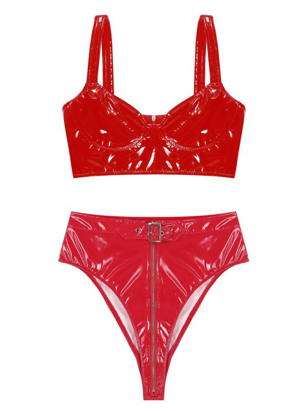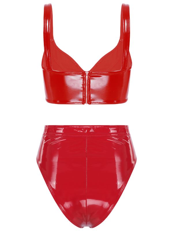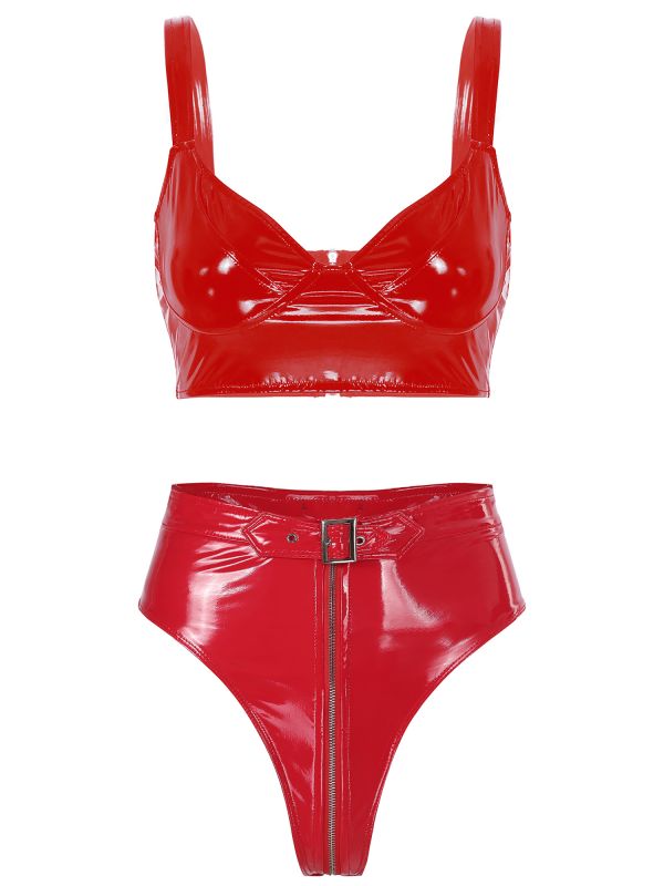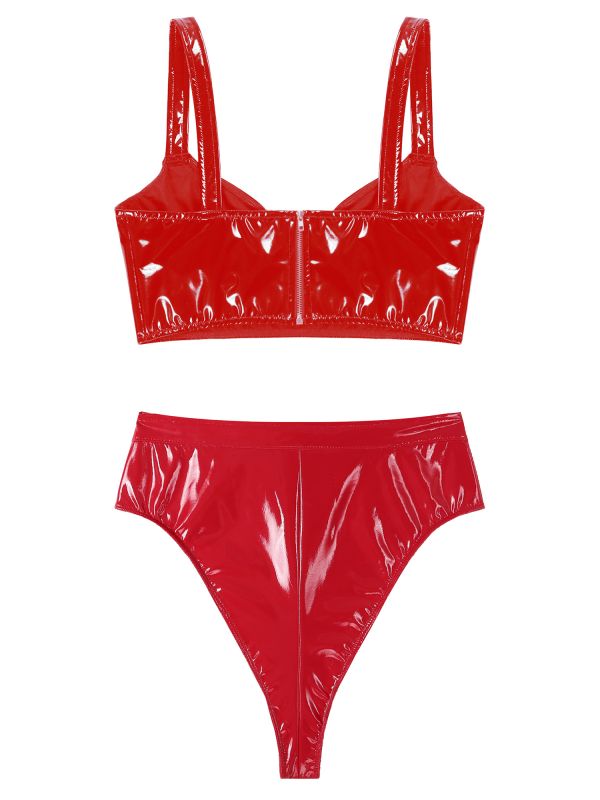 Womens 2pcs PVC Leather Sexy Lingerie Set Clubwear