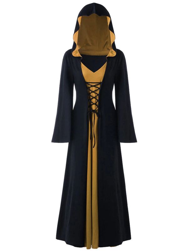 Women Renaissance Medieval Lace-up Front Hooded Dress Witch Costume